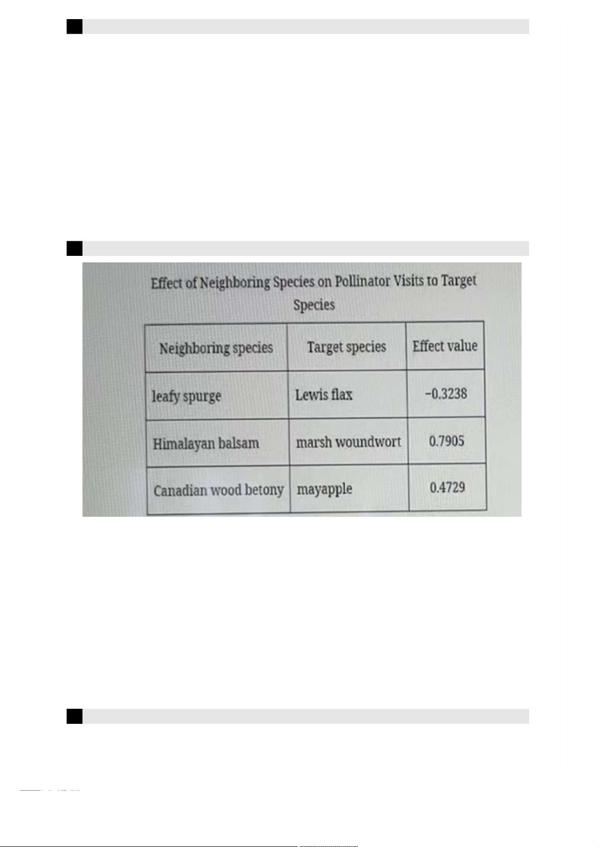 value to show how the neighboring species affected pollinator visits to the target species. The table