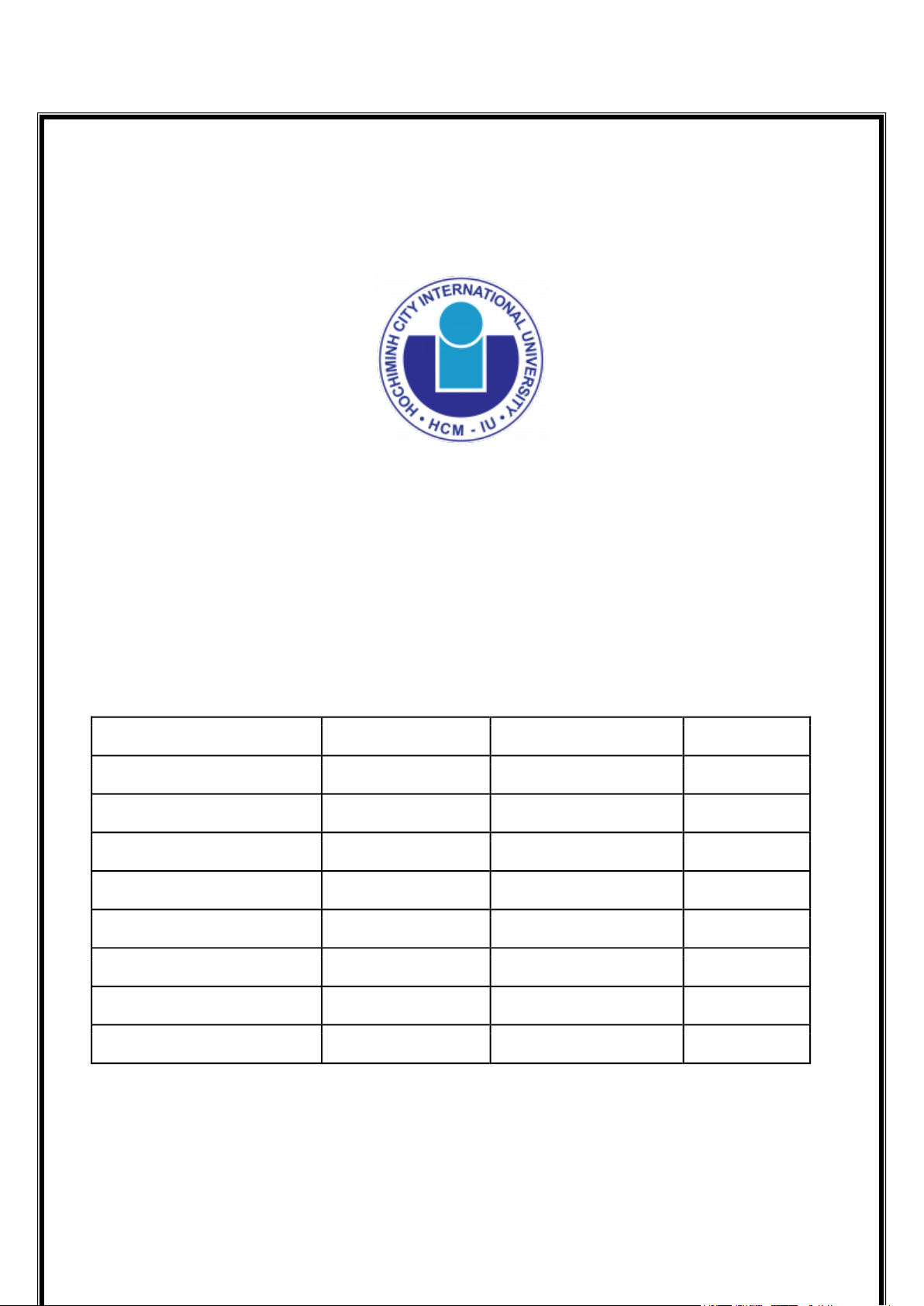 Group 6 - Member list Name Student ID Responsibility Contribution Lâm Tuấn Đôn BABAIU20543 Content, Presenter % 100 Đoàn Nguyễn Phương Linh BABAIU20066 Content, Presenter 100 % Nguyễn Phan Thái Bình BABAIU20378 Content, PPT, Report % 100 Trương Ngọc An Chiêu BABAIU19145 Content, Presenter 100 % Lâm Ngọc Phương Anh BABAIU19124 Content % 100 Nguyễn Vũ Vân Anh BABAIU19006 Content 100 % Nguyễn Phúc Minh Nhật BABAIU20105 Content % 100 Phan Vĩnh Nghi BABAIU20091 Content 100 % Ho Chi Minh, Viet Nam April 12th, 2023 lOMoAR cPSD| 59085392