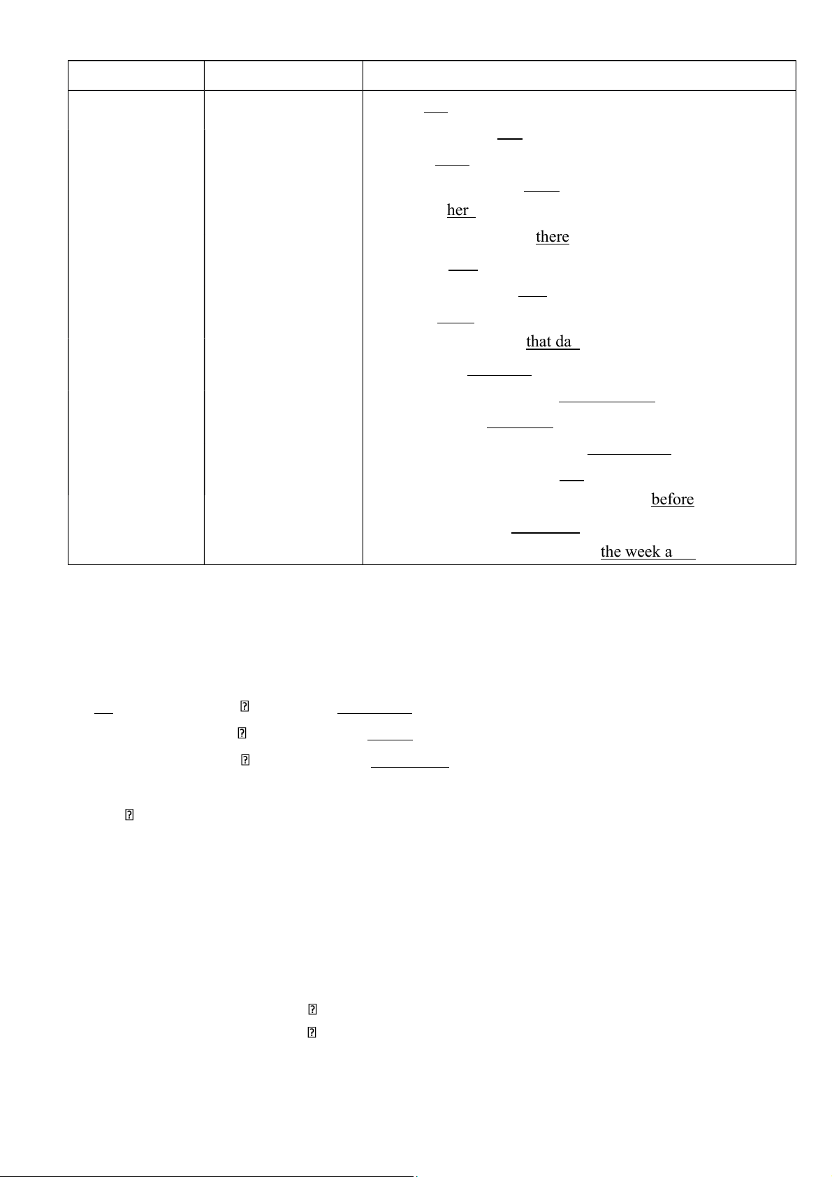 - Đổi một số tính từ chỉ định và trạng từ hoặc cụm trạng từ chỉ thời gian, nơi chốn Ex: “I saw her yesterday”