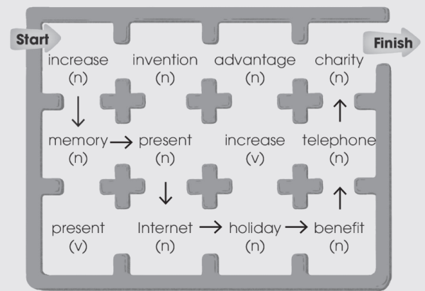 Step 1: Task delivering - TASK 1. ESCAPE THE MAZE (p.62) Escape the maze by connecting all words with the stress on the first syllable. Follow the examples and then listen to check your answers. Practise saying the words. - T explains the activity. - Ss try to escape the maze by connecting all words with the stress on the first syllable. T tells them to study the examples. Step 2: Task performance - Ss work in pairs. - Ss connect the words then listen to check the answers Step 3: Report and discussion T asks them to say these words aloud (increase, memory) with stress on the first syllable. Step 4: Judgement - T gives feedback and discusses with the class. T plays the audio file for students to listen and repeat. Key: | PRONUNCIATION TASK 1. ESCAPE THE MAZE (p.62) Escape the maze by connecting all words with the stress on the first syllable. Follow the examples and then listen to check your answers. Practise saying the words.