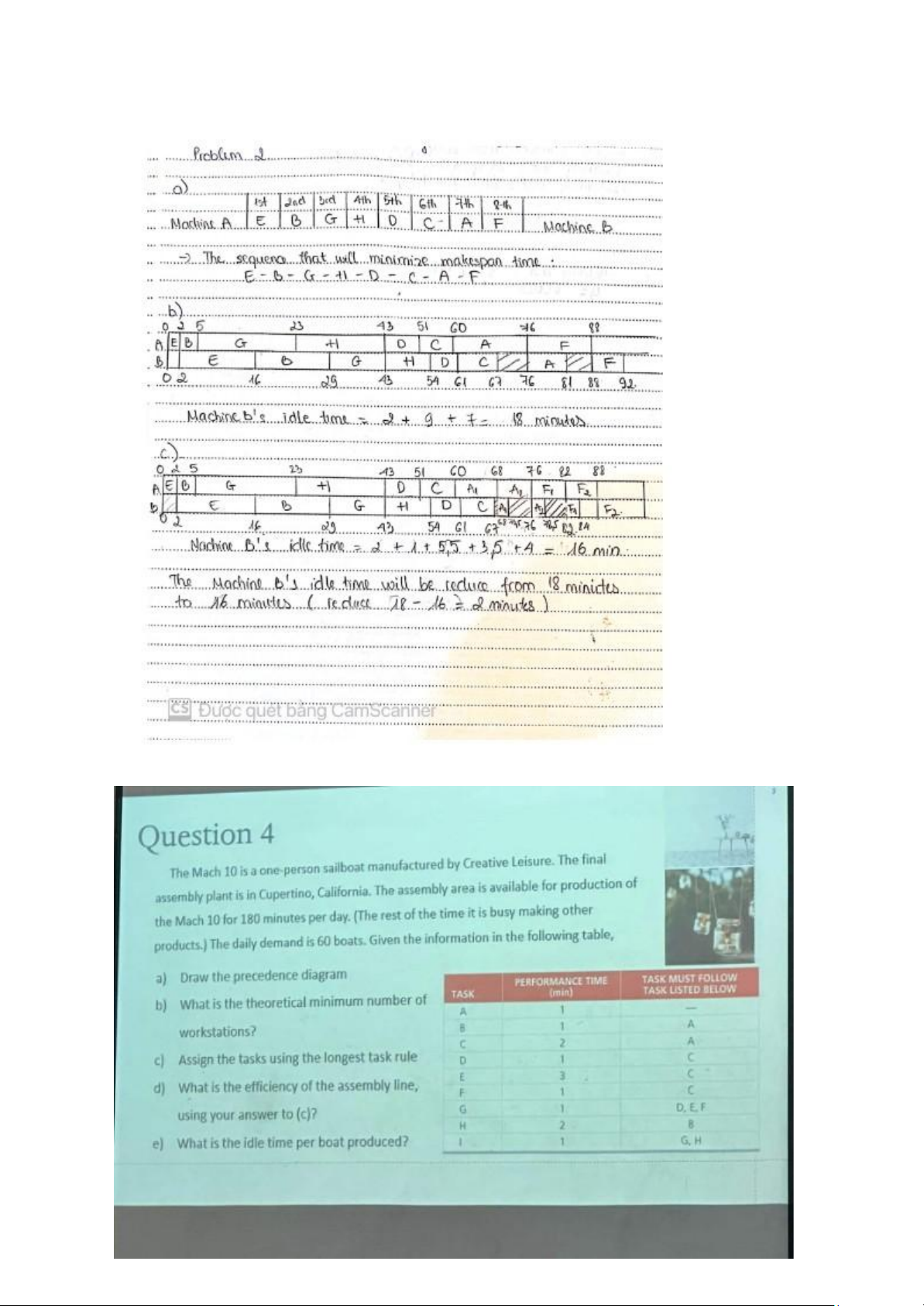 - Construct a chart of the resulting sequence, and find the machine B’s idle time.