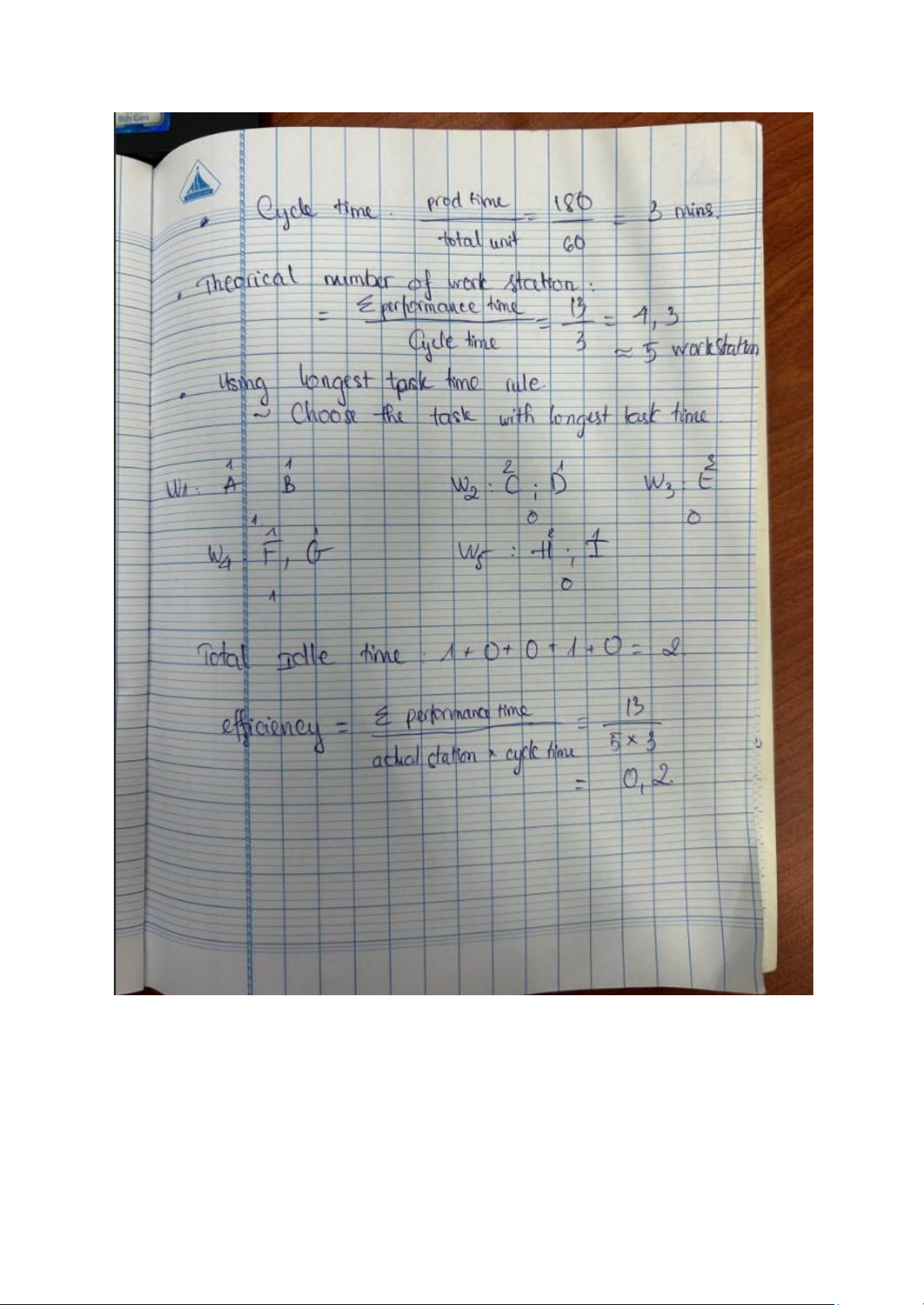 Cycle time: thời gian tối đa trong một trạm, khi gộp trạm thì total time trong trạm