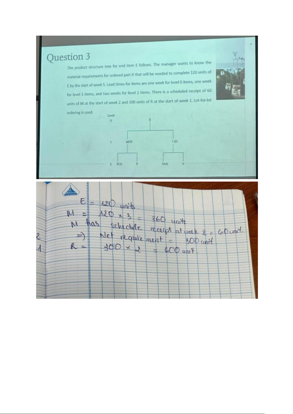 b) New holding cost = 120 ; new demand = 6000 units. EOQ new = 283 units. lOMoAR cPSD| 58097008 CHAP 14: MRP MRP: