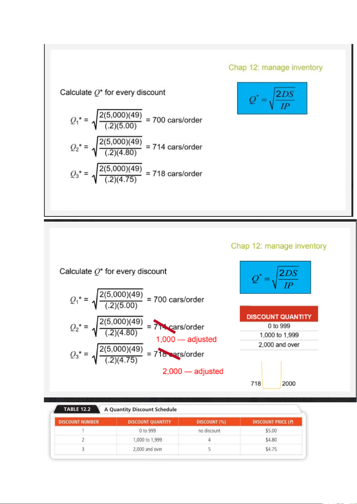 + Lot size ordering / EOQ lot size: order theo khuôn. Nếu đề cho EOQ đầu