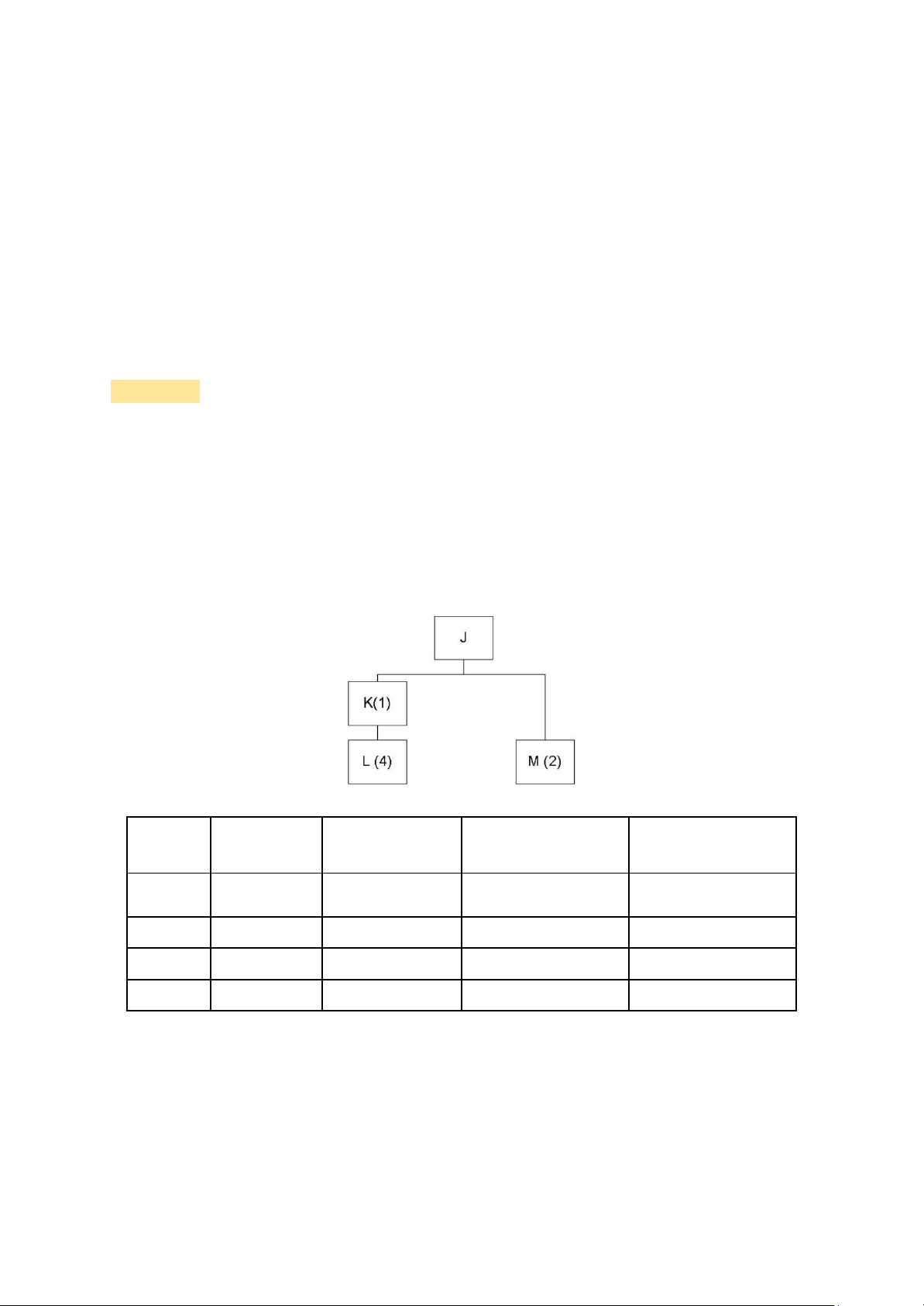 Consider the bill of material for Product J and the data given in the following