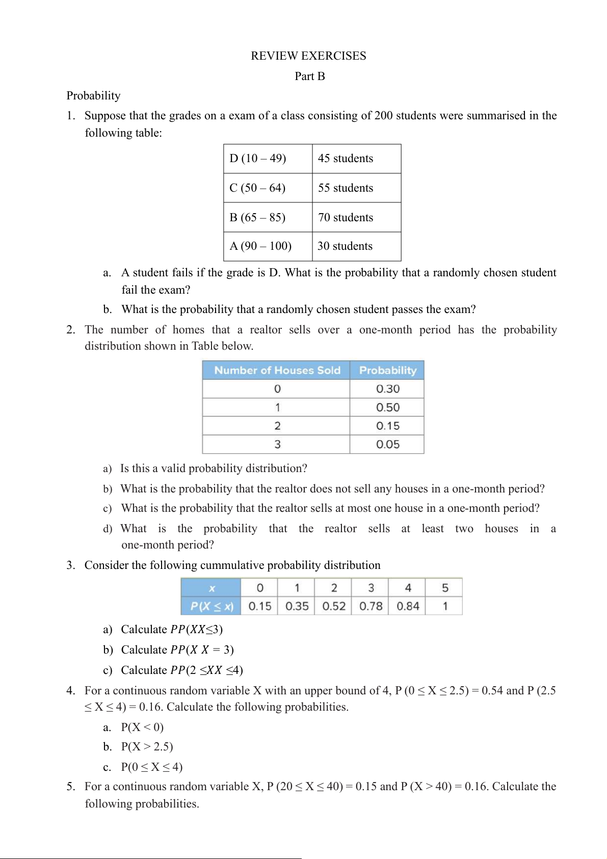 REVIEW EXERCISES Part B Probability