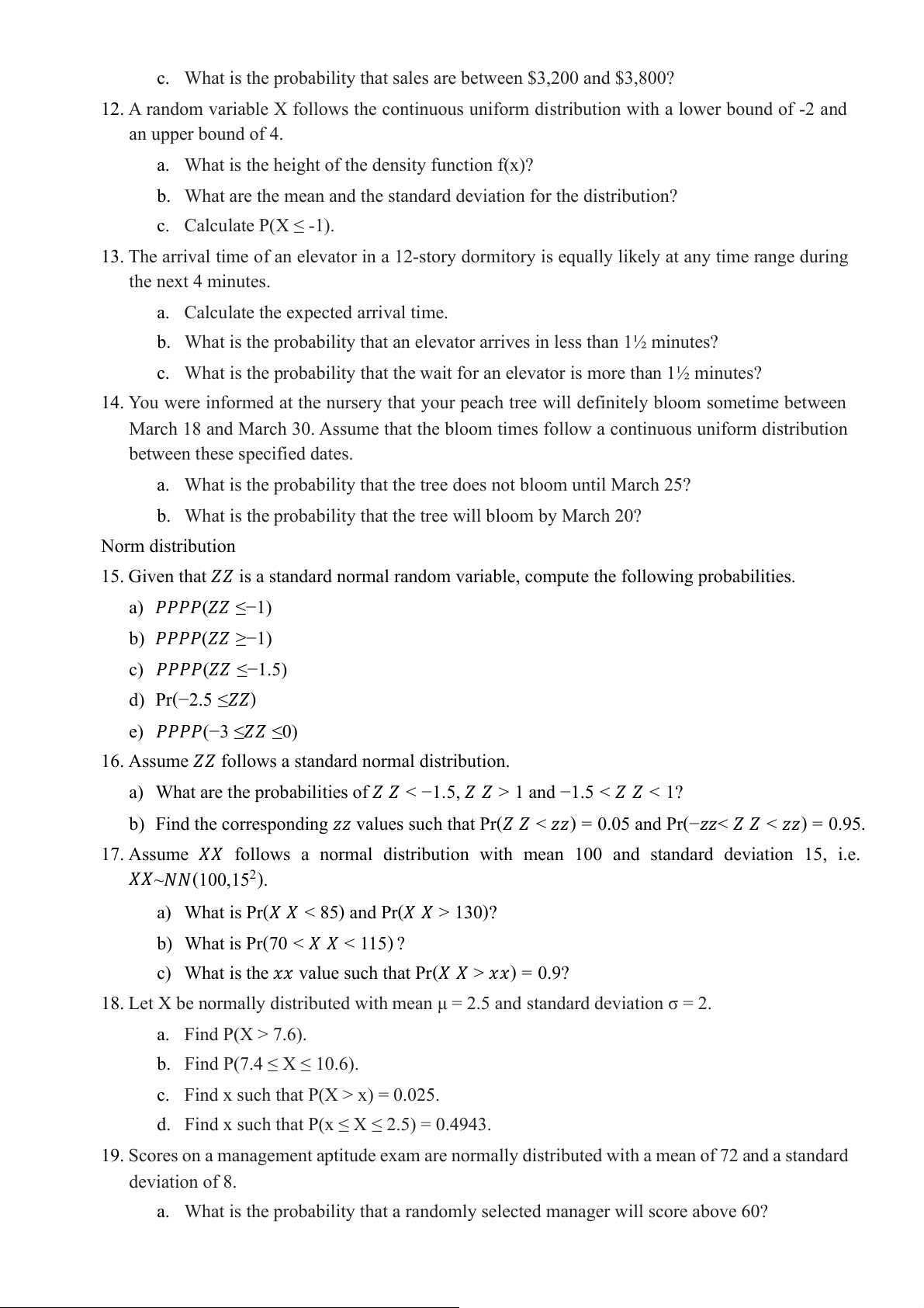 16. Assume 𝑍𝑍 follows a standard normal distribution.