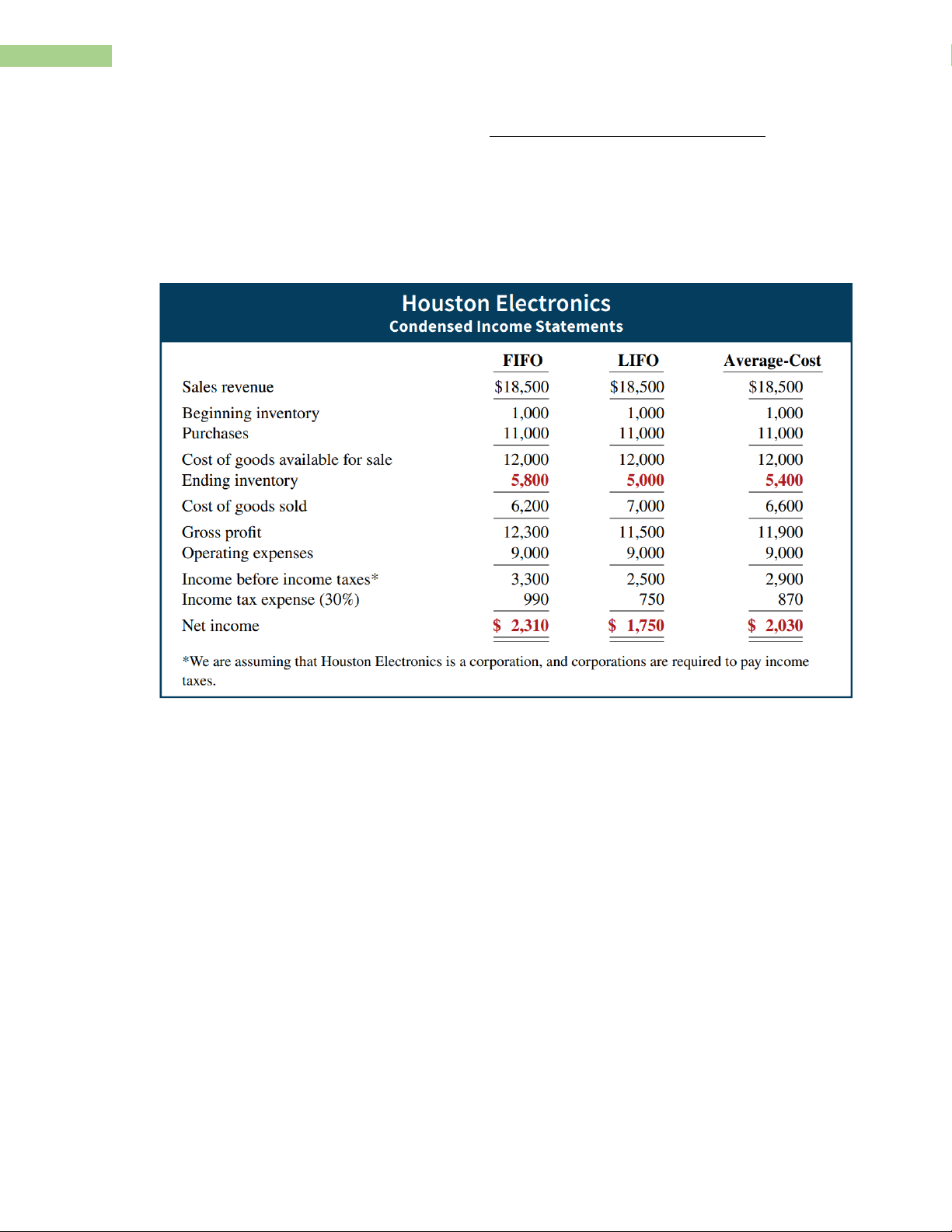 - LIFO results in the lowest income taxes (because of lower net income) during times of rising prices. IV)