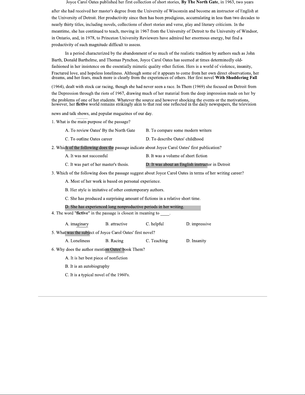 Revision for First Term Test on Joyce Carol Oates and O. Henry