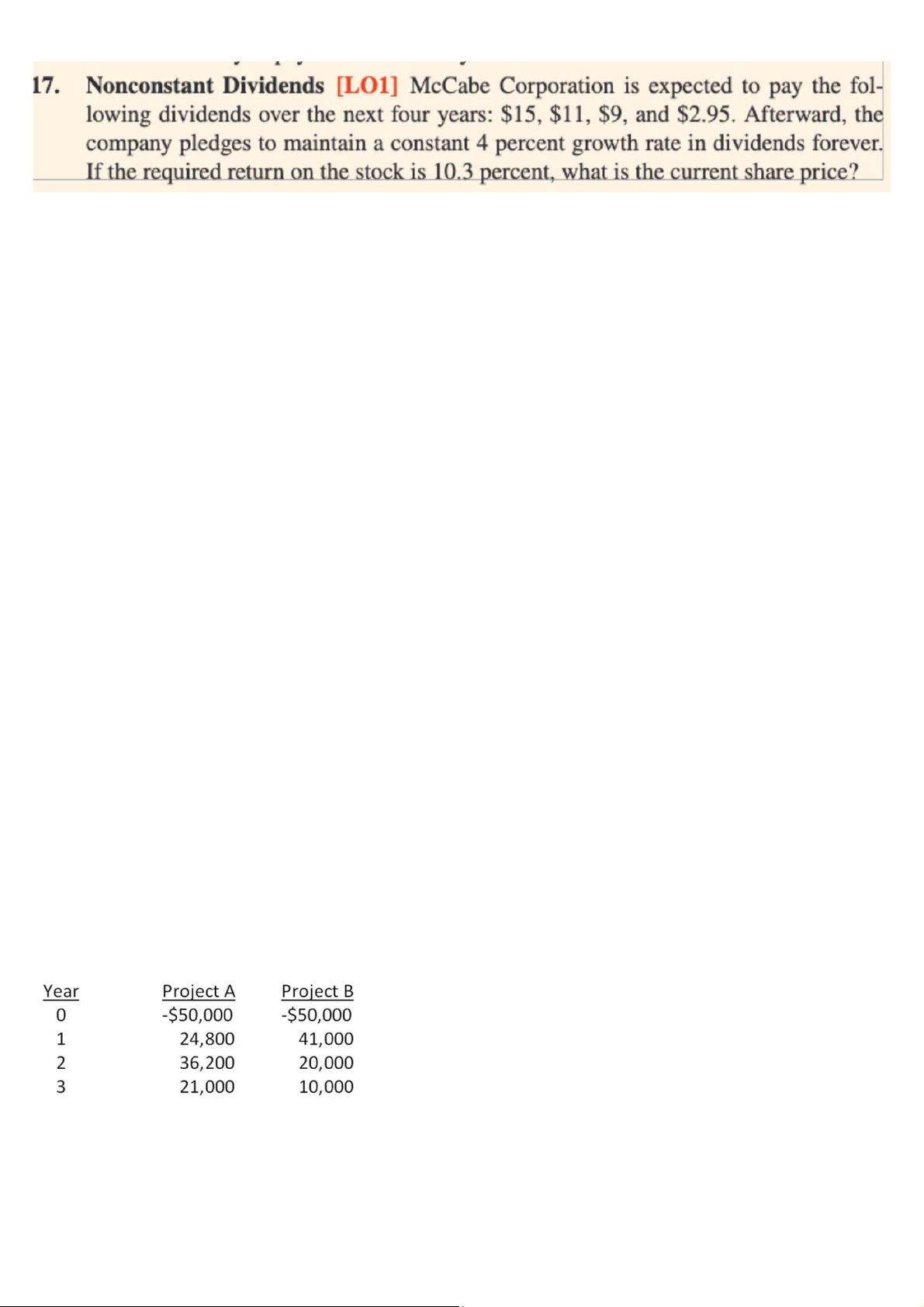 by 20 percent in year 1 and 15% in year two. After that dividends are expected to increase by 3 percent annually.