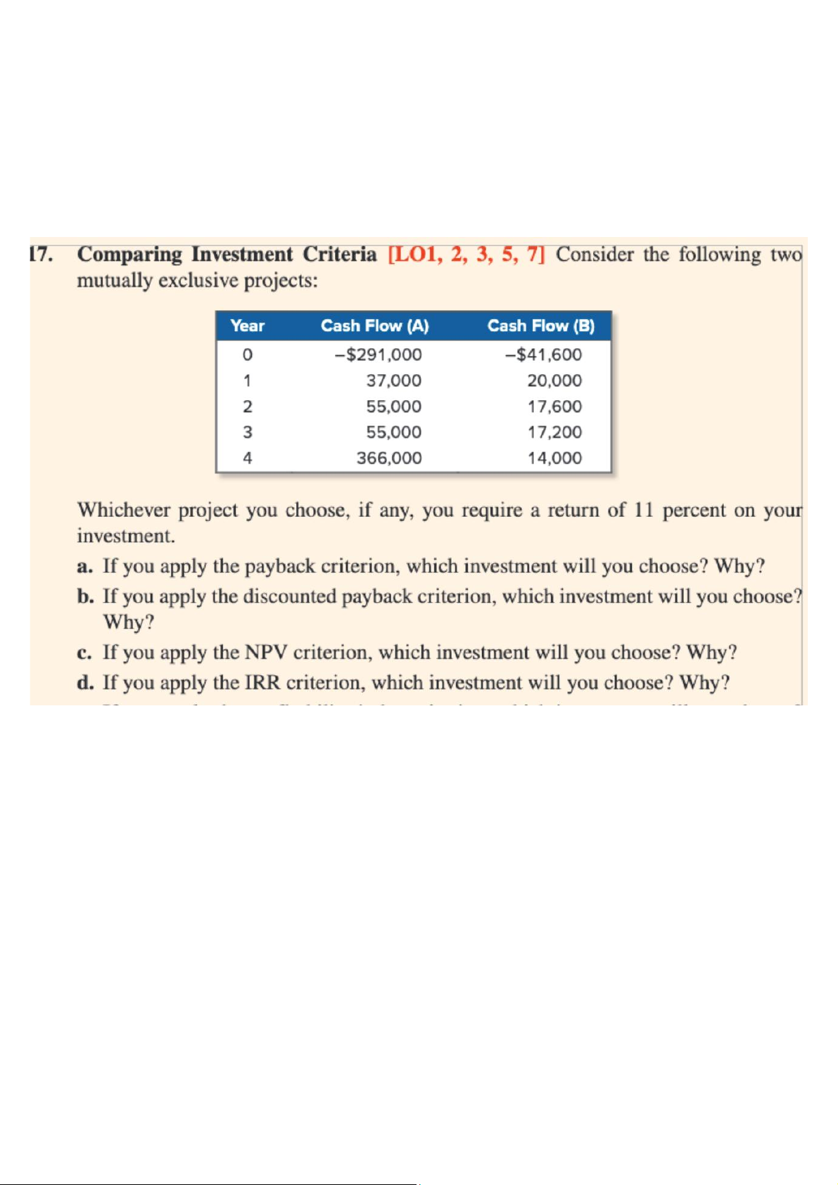 periods for both projects are 3 years. Which project should you accept based on NPV/ Payback/ Discounted Payback Analysis.