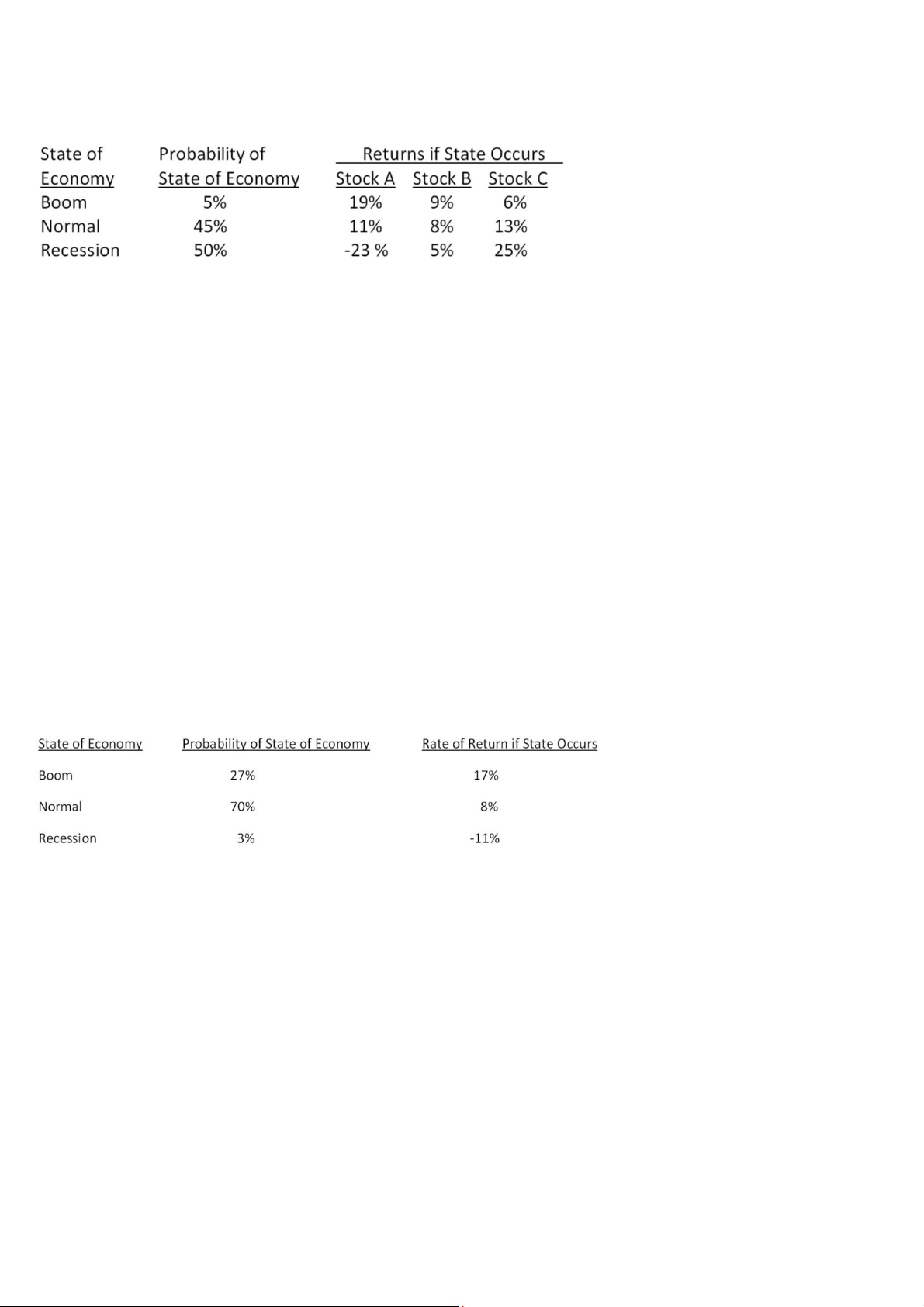 Ex 6.2: You own a portfolio with the following expected returns given the various states of the economy. What is