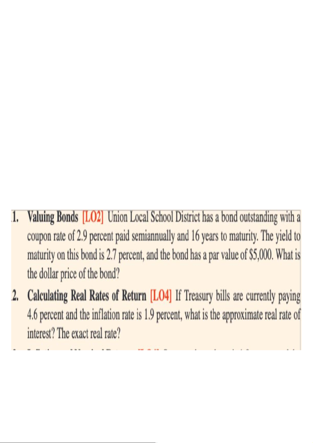 Ex3.1: Grand Adventure Properties offers a 9.5 percent coupon bond with annual payments. The yield to maturity