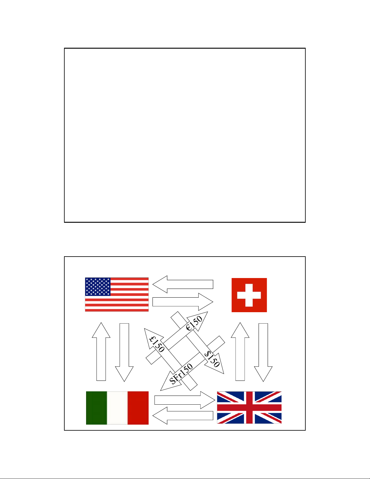 Trong các slides sau, một công ty có các tỷ giá: £1.00 = $2.00 €1.00 = $1.50 SFr 1.00 = $0.90 8-28 Bù trừ rủi ro SFr150 $150 €150 £150 $150 SFr150 €150 £150 15 8-29 6/6/2025