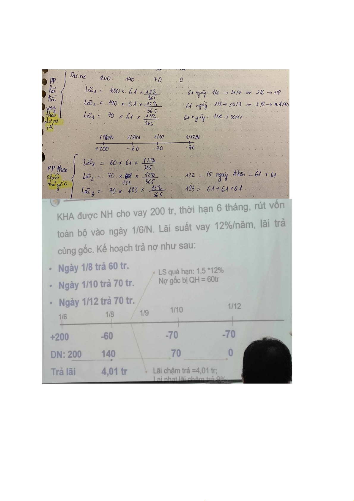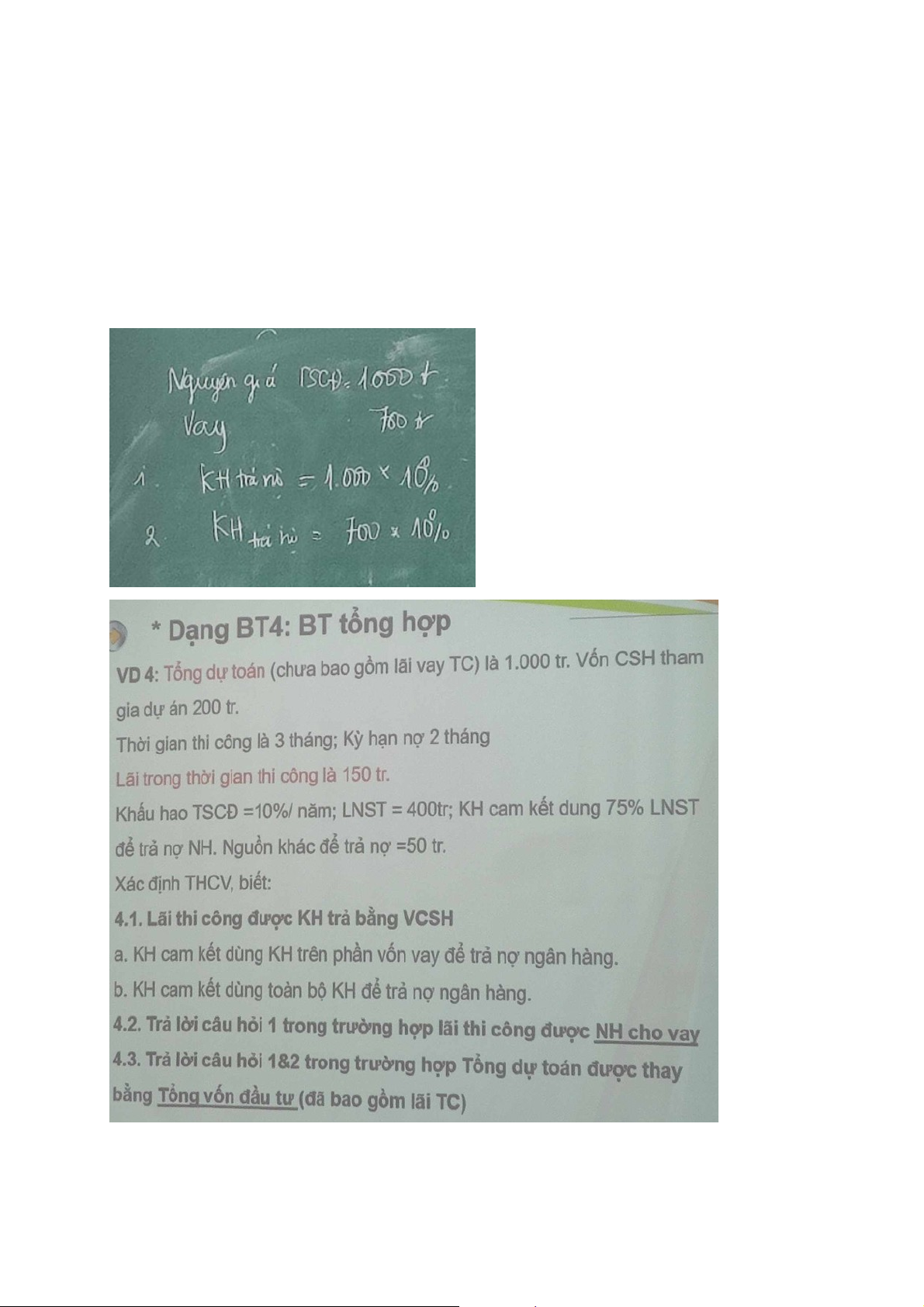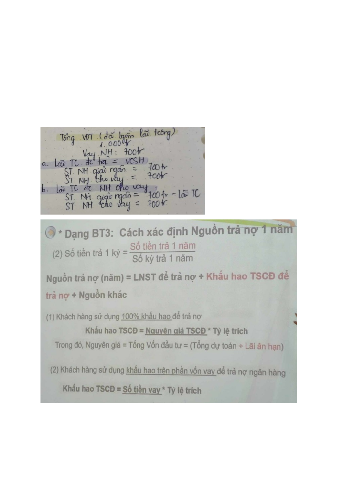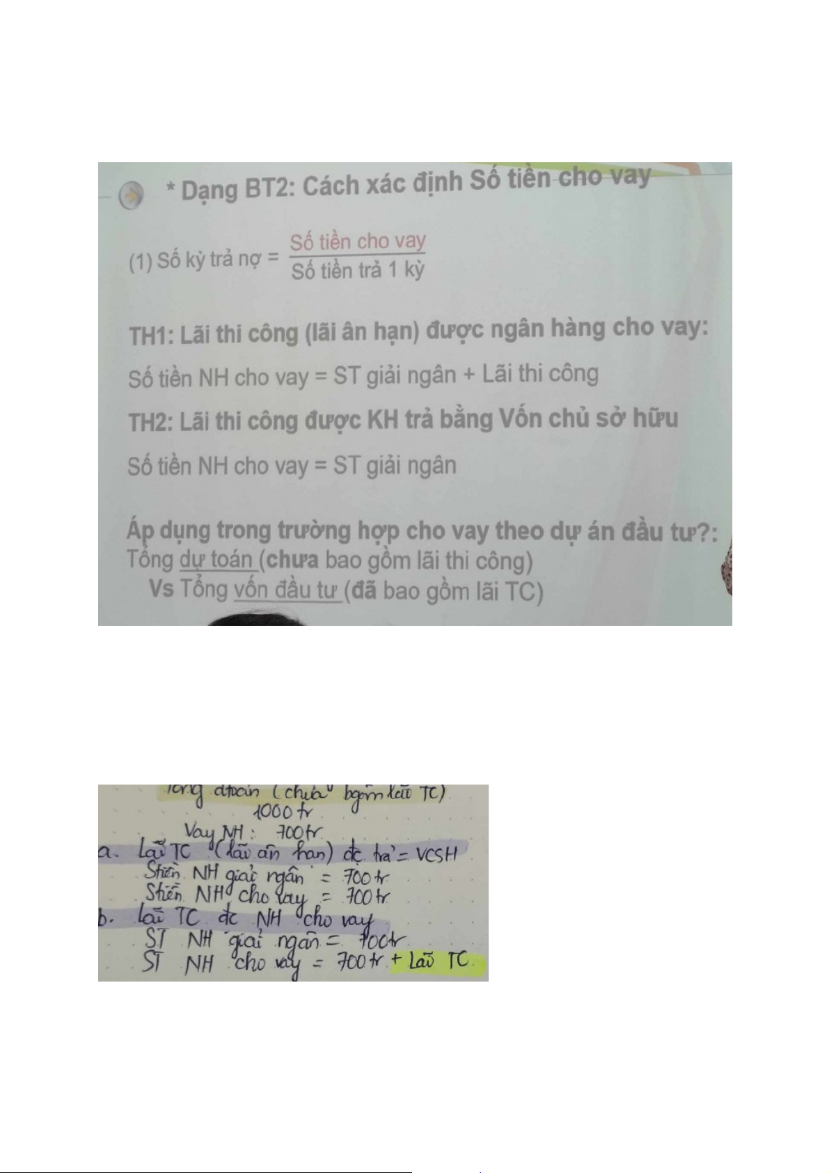 gồm lãi TC) =1.000 tr; trong đó vay ngân hàng = 700tr. Tính số tiền NH giải ngân, số tiền NH cho vay trong TH (i)