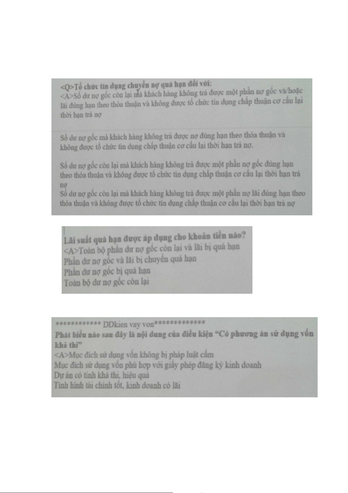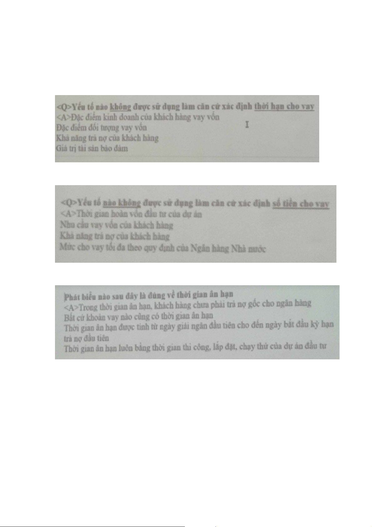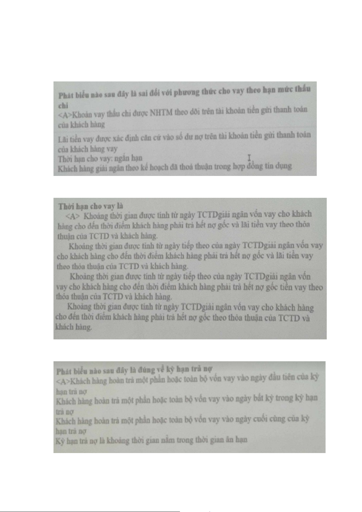 Chương 3: HOẠT ĐỘNG TÍN DỤNG CỦA NHTM C4: 1. D 2. B 3. C 4. A 5. D 6. B 7. B 8. B 9. A 10. D