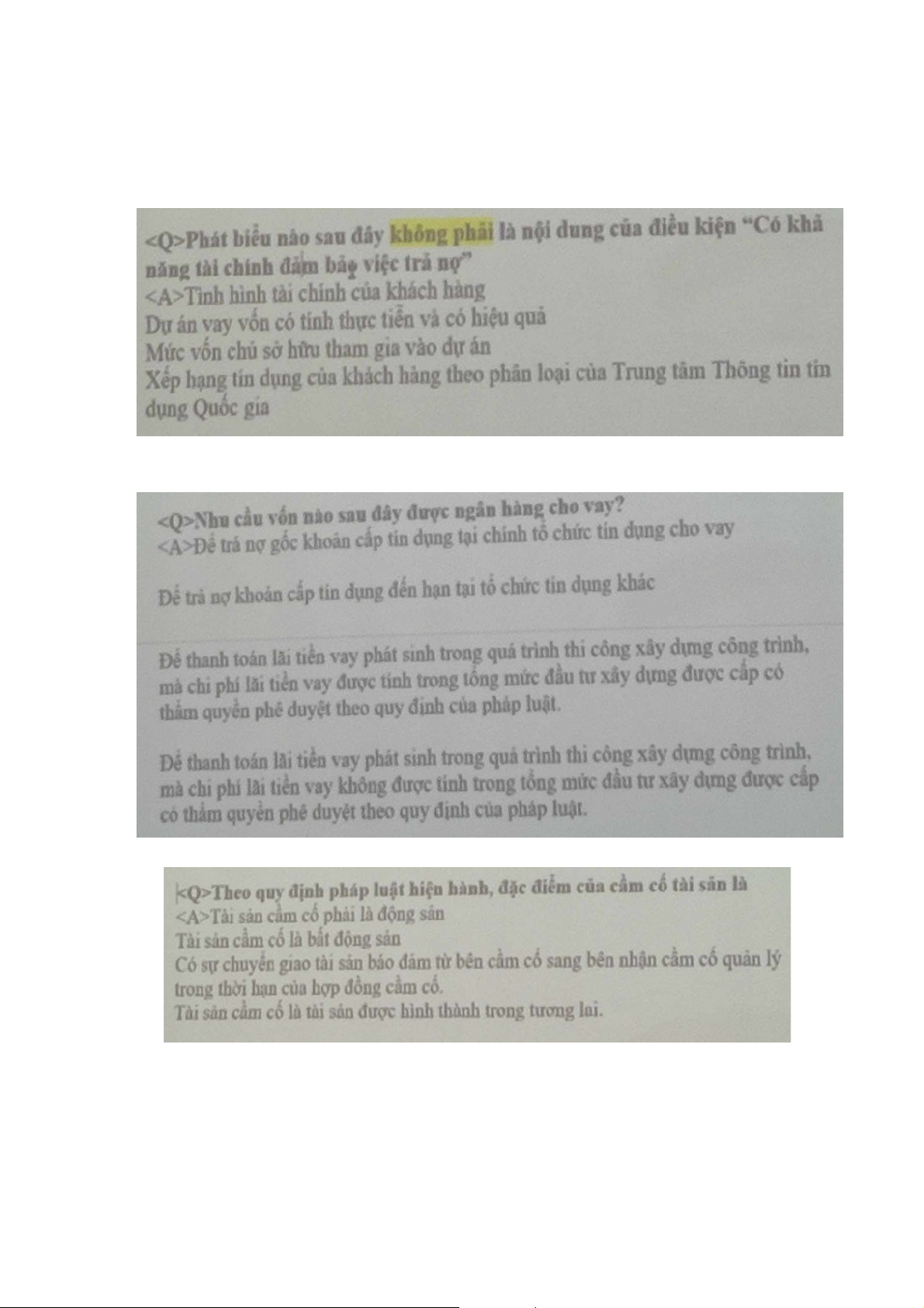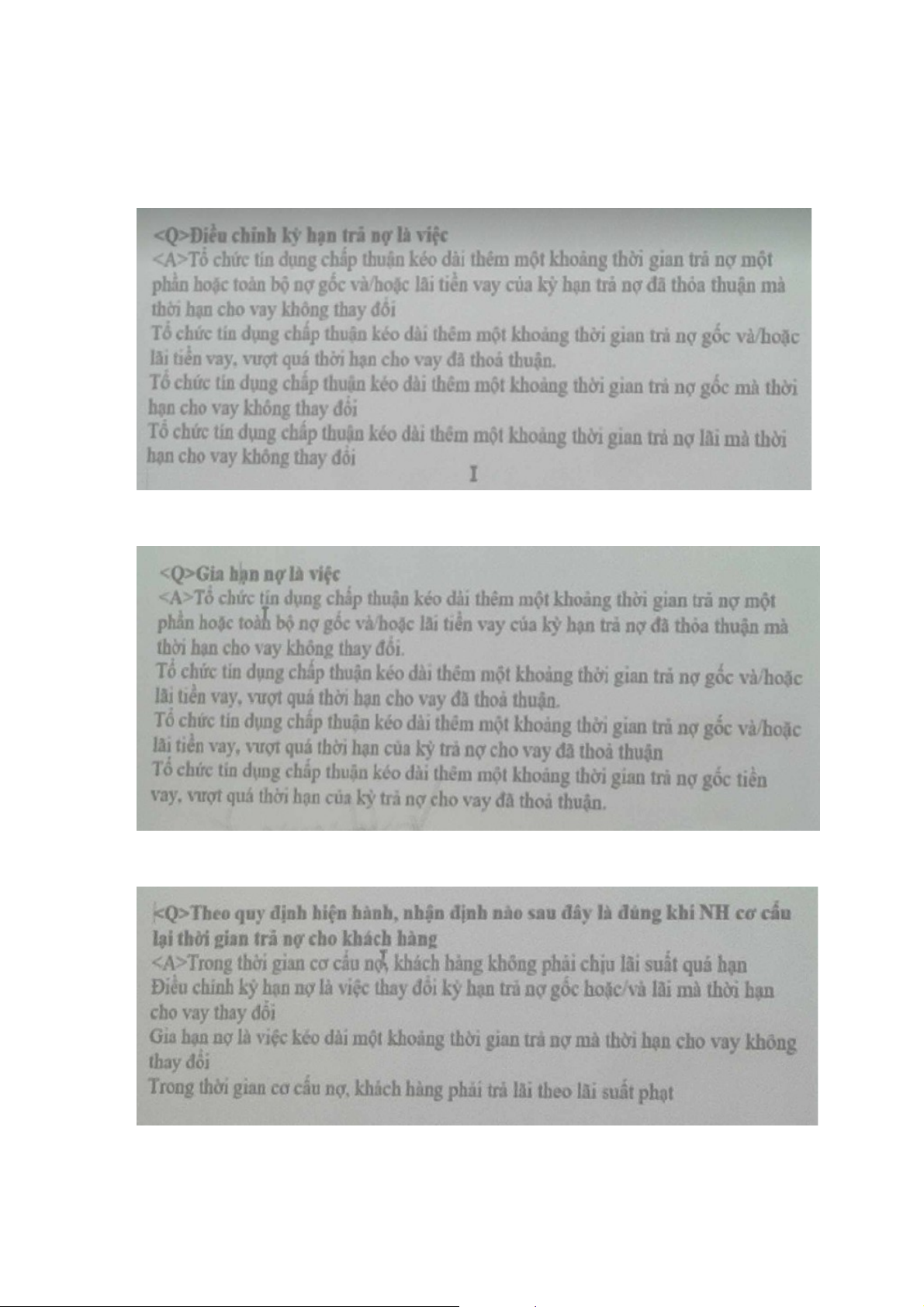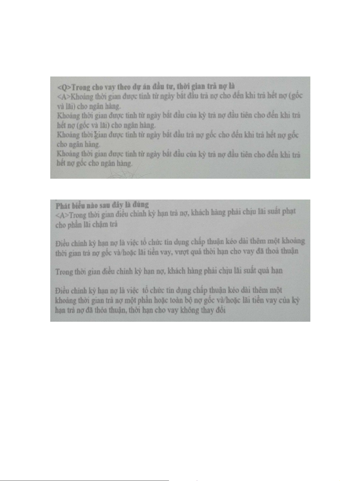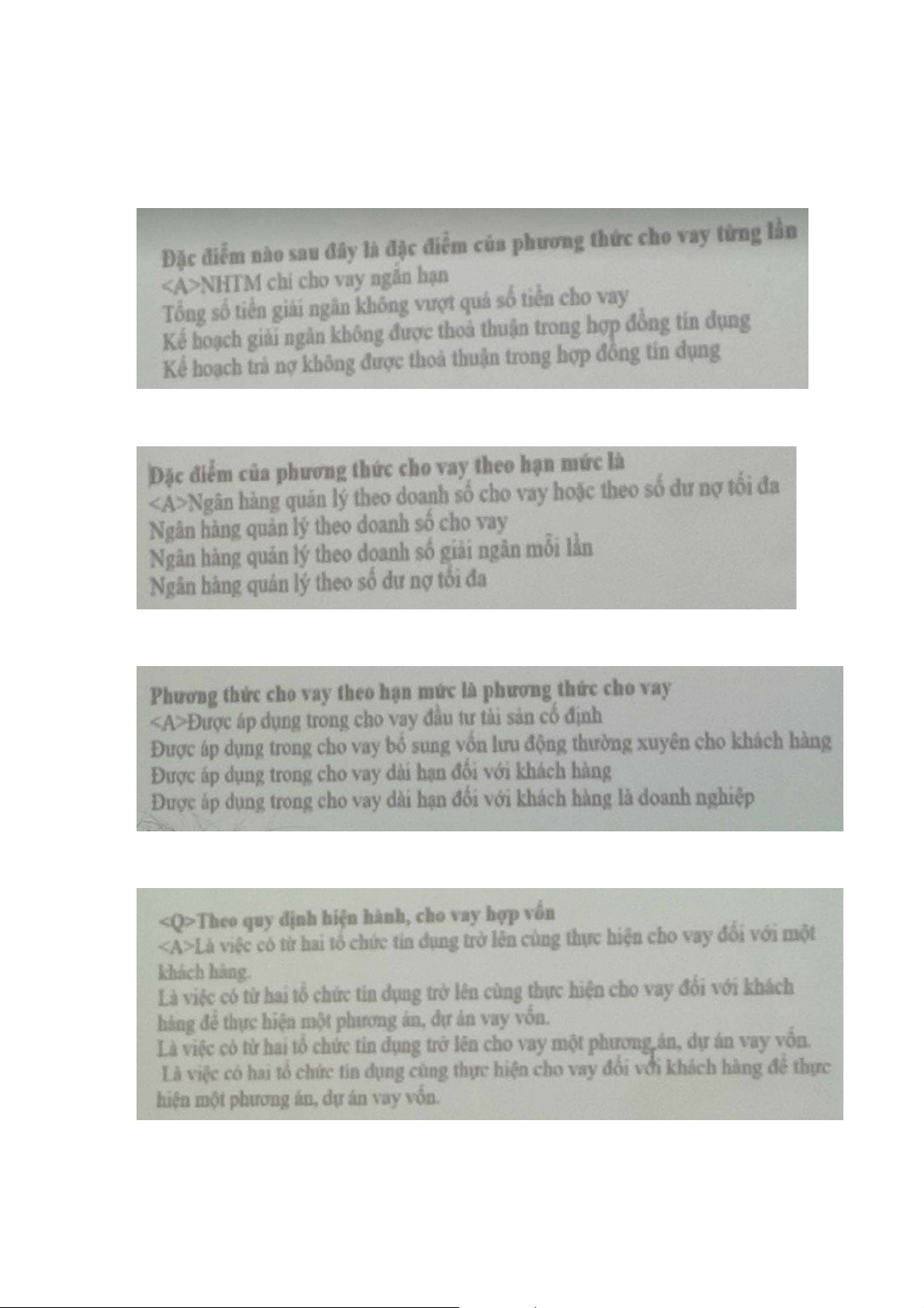 Chương 3: HOẠT ĐỘNG TÍN DỤNG CỦA NHTM C4: 1. D 2. B 3. C 4. A 5. D 6. B 7. B 8. B 9. A 10. D