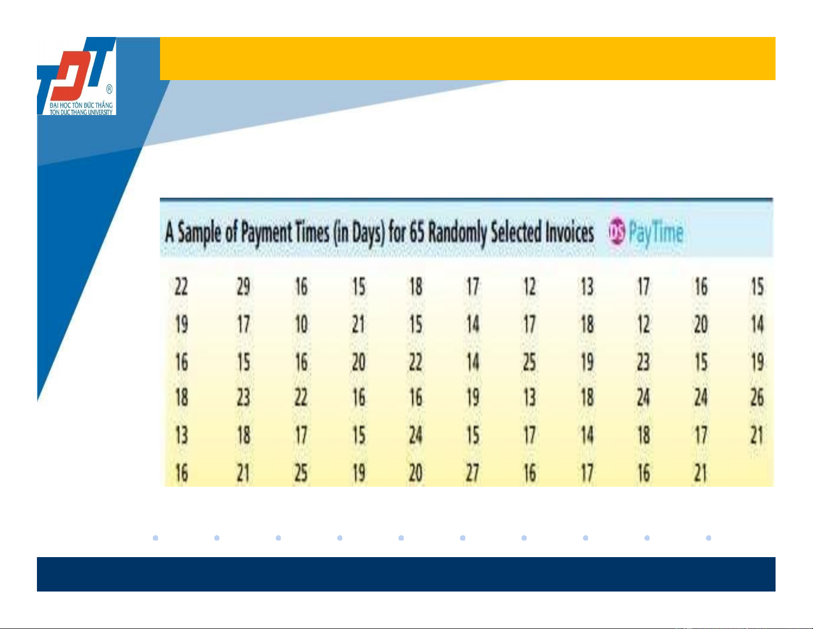Payment time for 65 invoices is randomly selected and given in the following table: