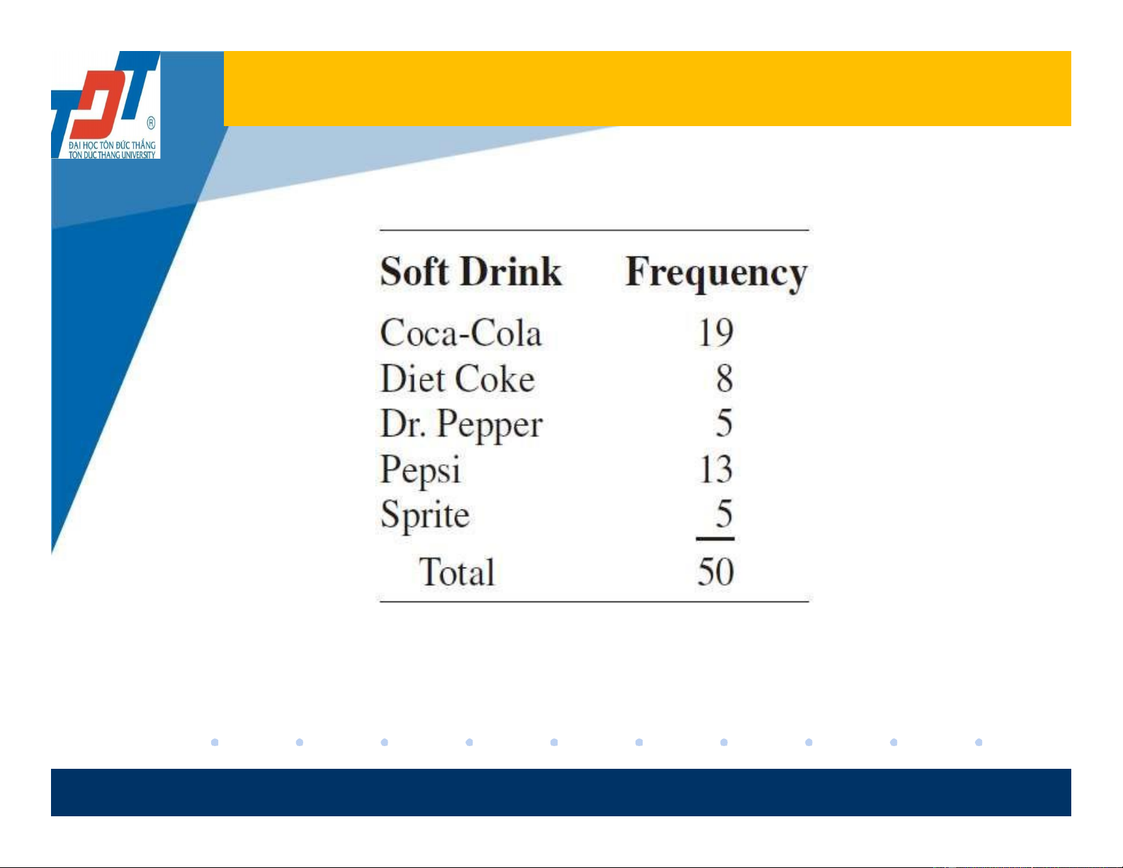 • Example: Data from a sample of 50 Soft Drink Purchases given in the table. 5