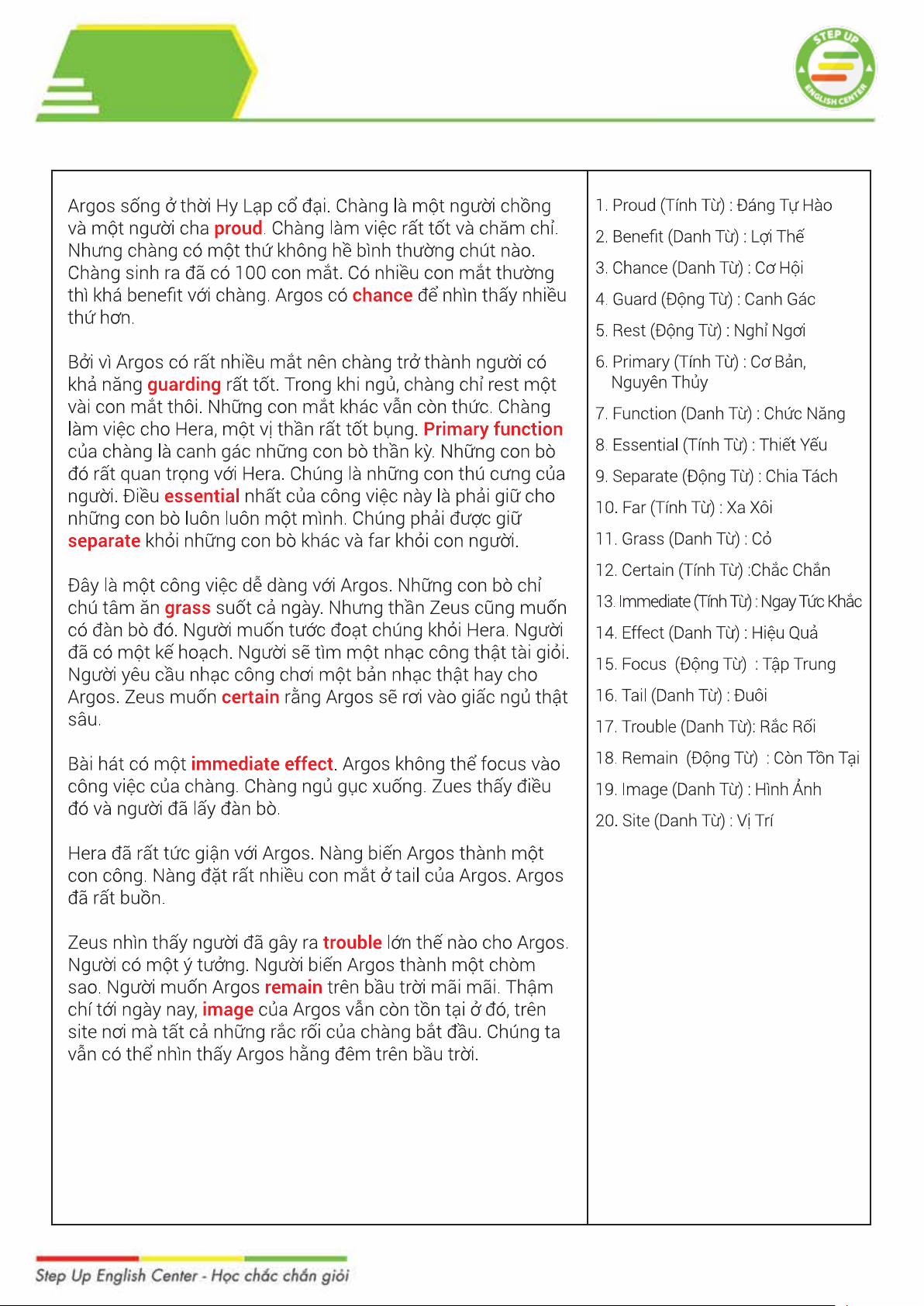 The song had an ……………. …………….. Argos couldn’t ……………. on his job. He fell asleep. Zeus saw this, and he took the cow. Hera was very angry with Argos. She turned him into a peacock. She put his many