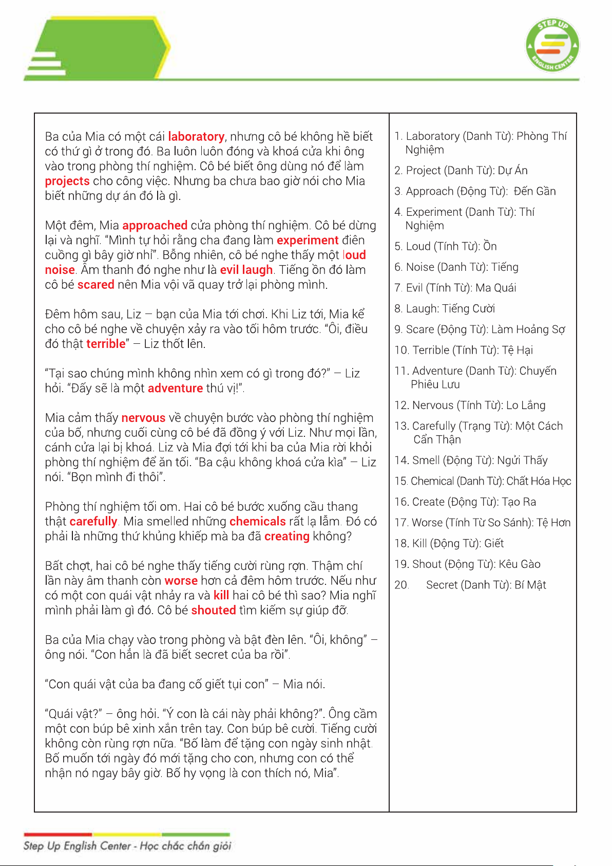 The laboratory was dark. The girls walked down the stairs 10………….. Mia 11…………. strange