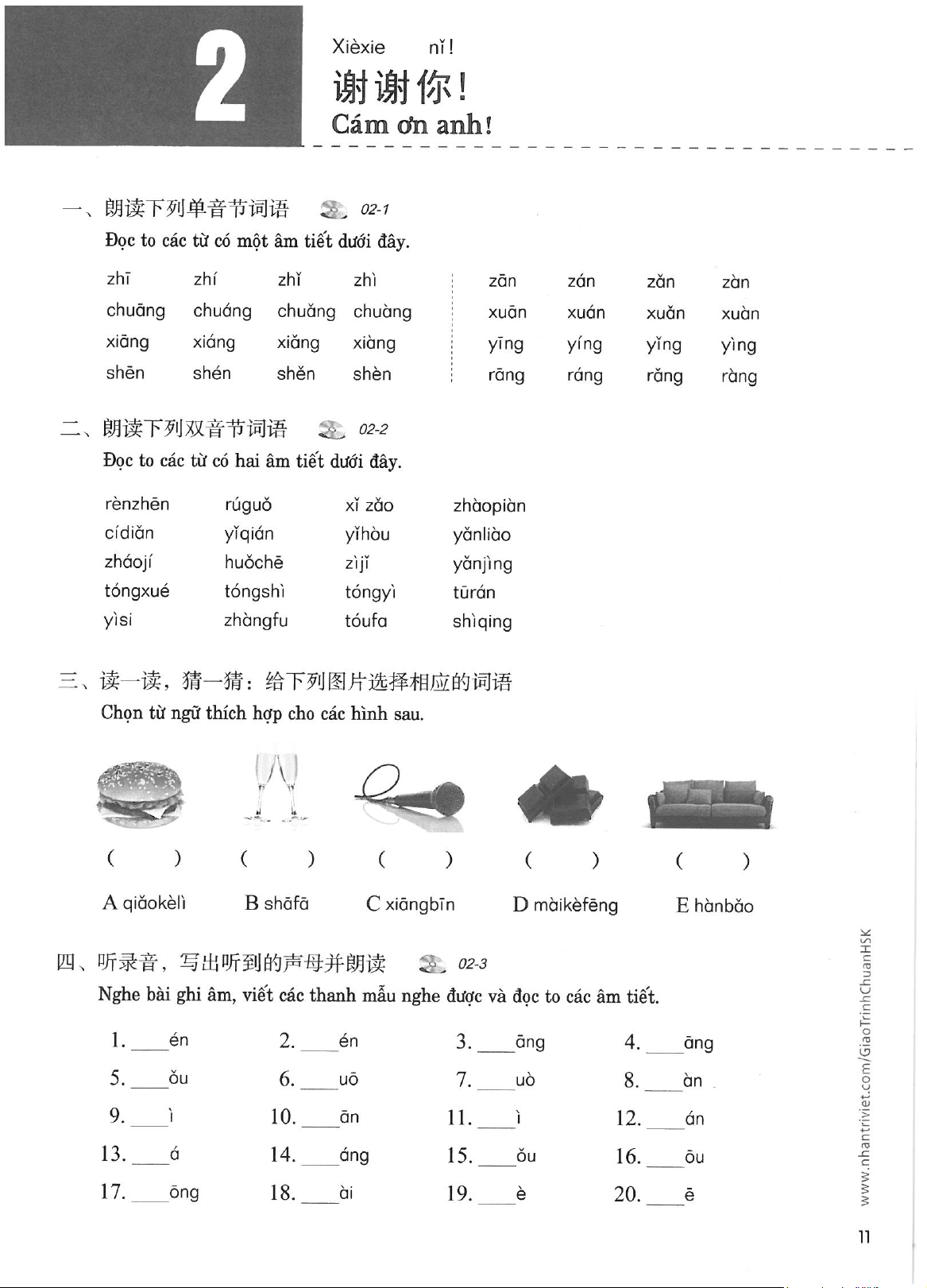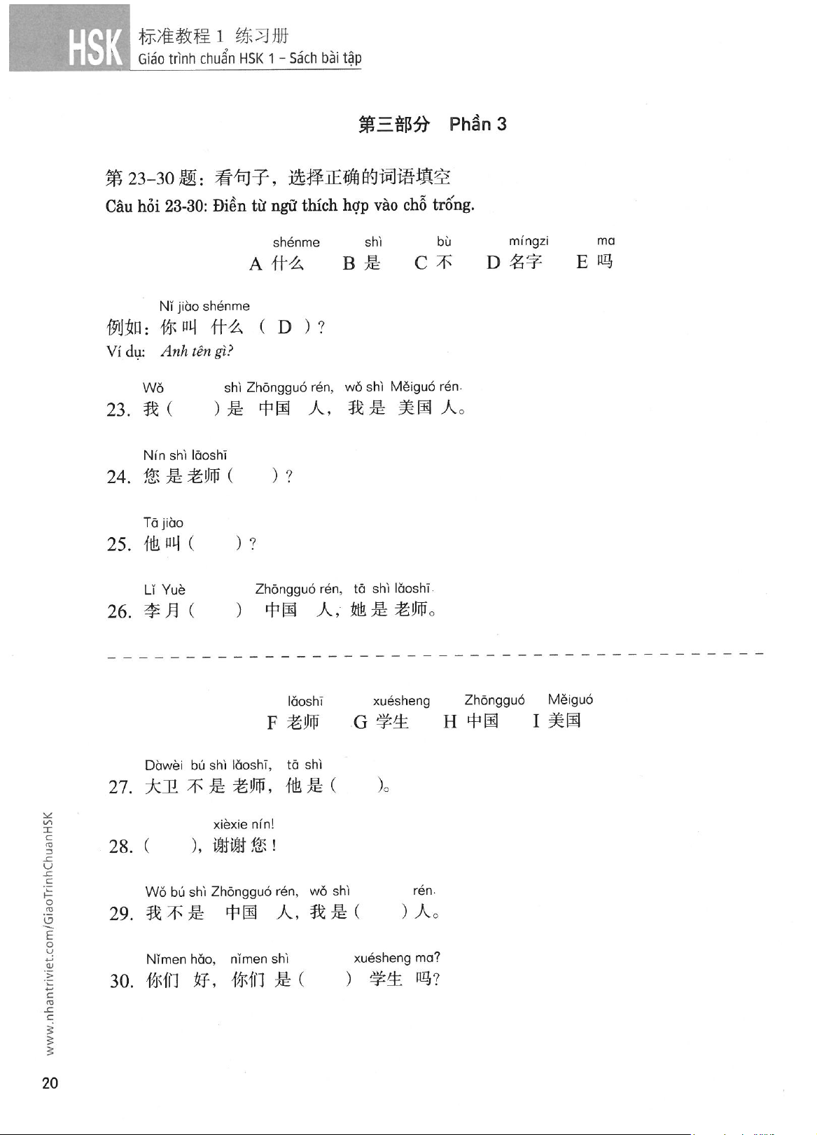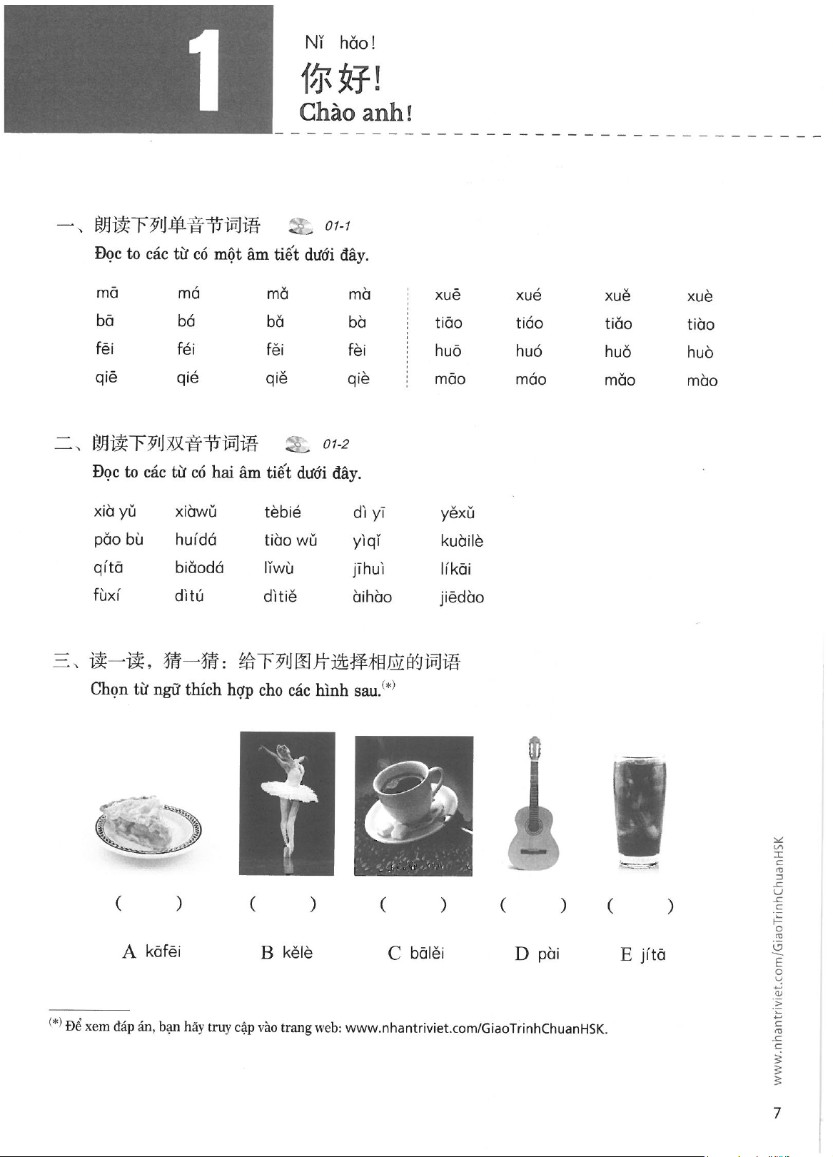 Sách bài tập - Giáo trình chuẩn HSK 1 môn Tiếng Trung | Trường Đại học Hà Nội