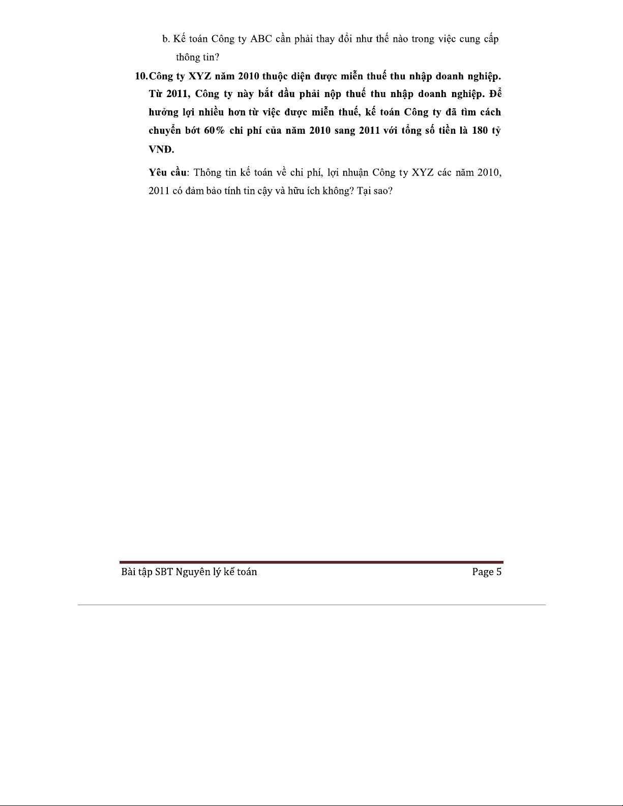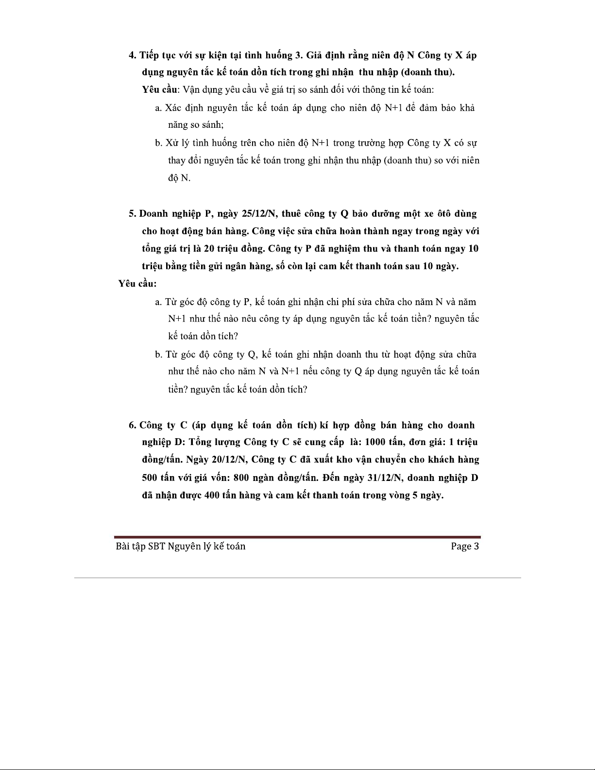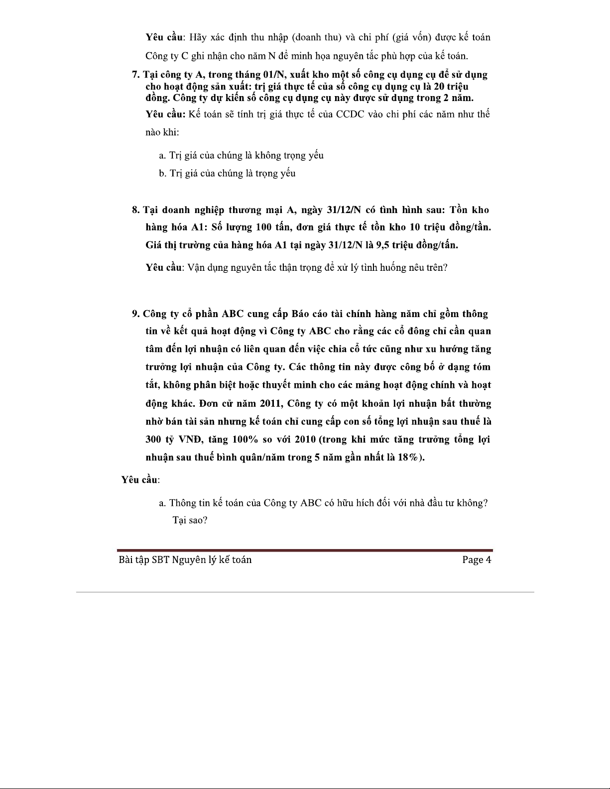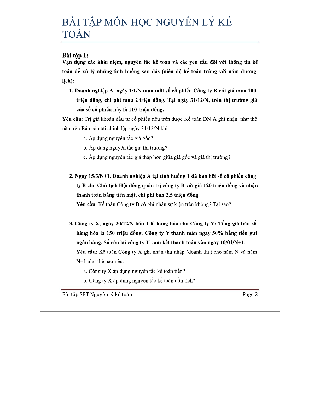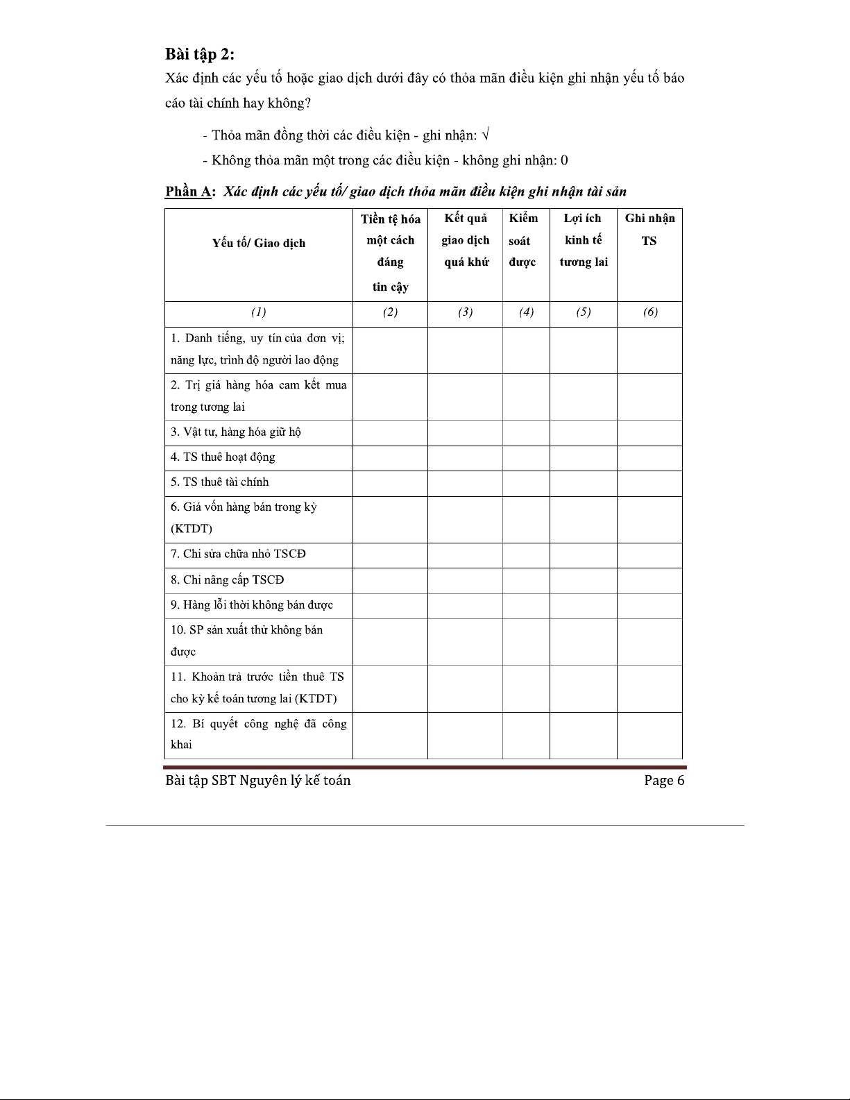 Bài tập câu hỏi môn Nguyên lý Kế toán - Bộ môn Lý thuyết Kế toán