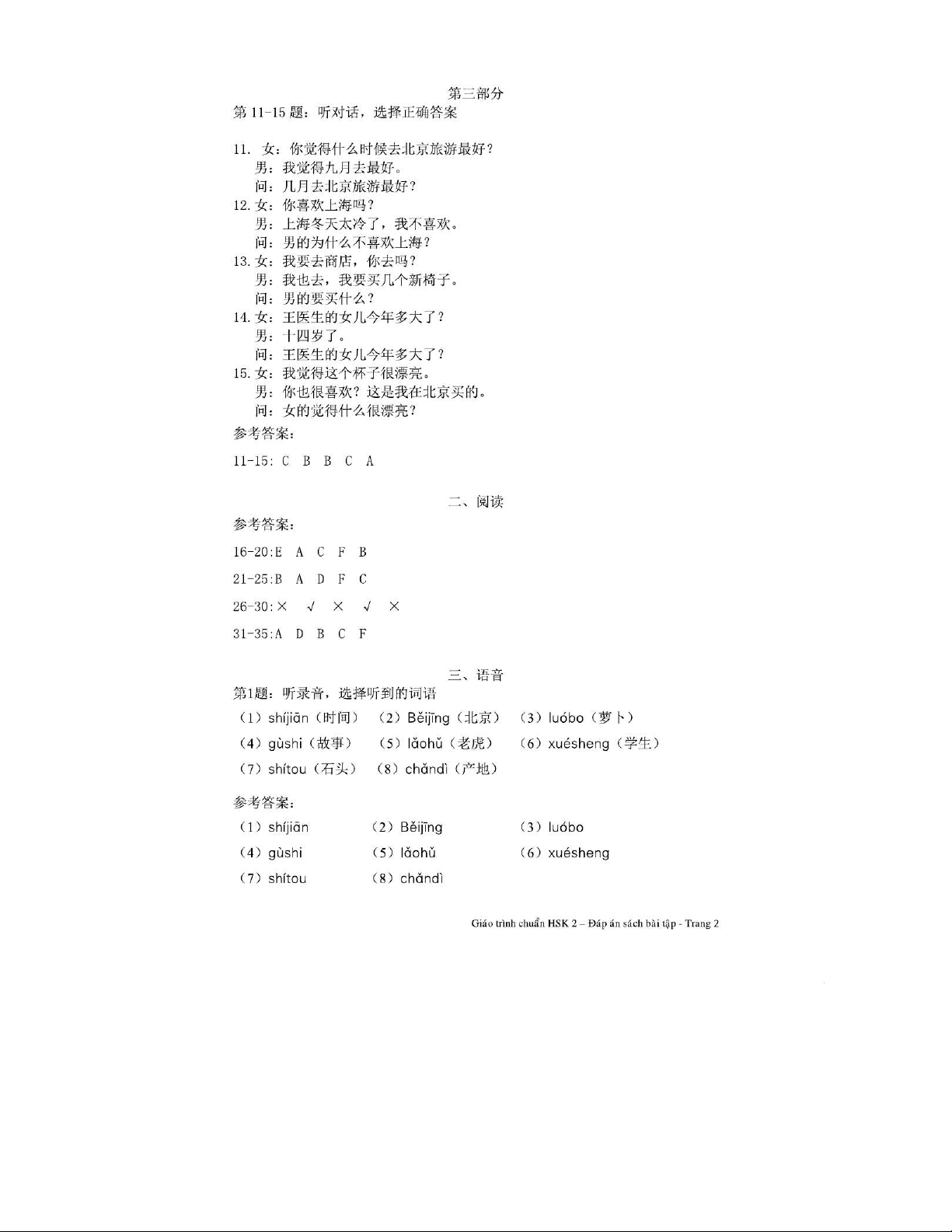 Sách Bài Tập Phụ Lục - HSK 2 Keys for Language Practice