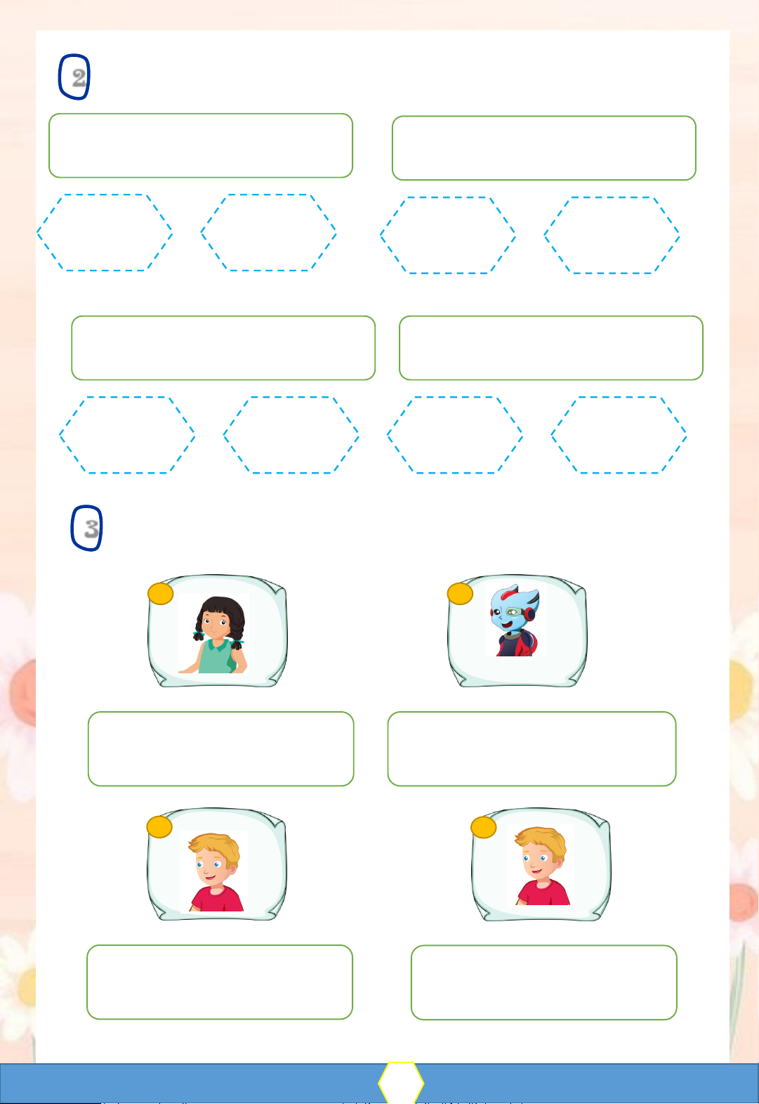 Listen and tick the answer. 1 2 a) My name is Nick. a) His name is Alice. b) N-I-C-K b) T-O-M 3 4 a) His name is Tom. a) Her name is Mai b) My name is Tom b) His friend name is Mai 5 6 a) A-L-I-C-E a) I’m six year old.. B T-O-N-Y b) I’m happy 16 I learn smart start 3 6