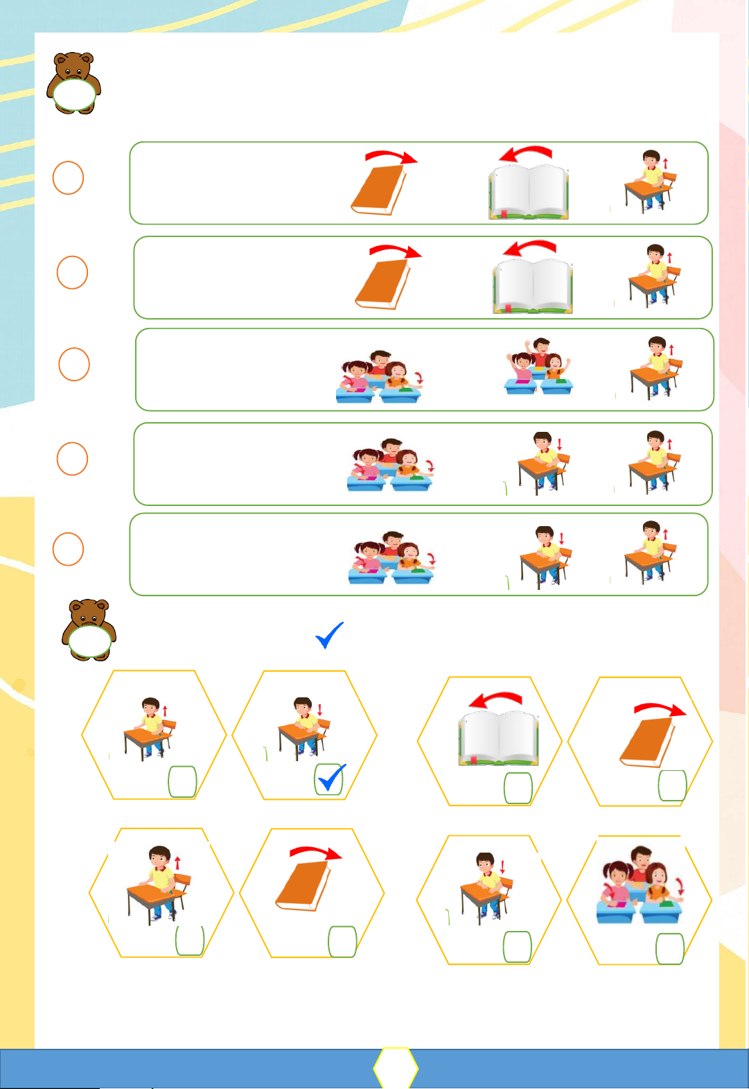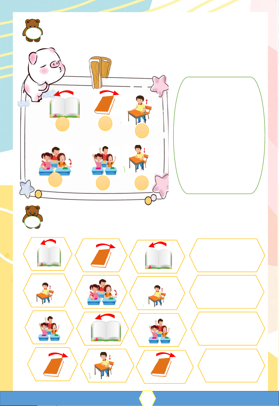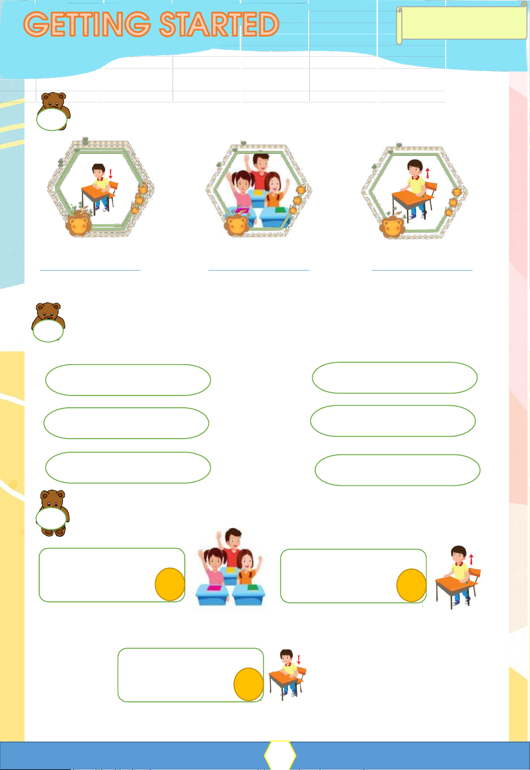 CONTENTS Page Unit Getting start 1-13 1 My friends 14- 33 2 Family 34-53 3 School 54-77 Home 4 78 -98 Review unit 1-4 99-108 5 Sports and hobbies 105-124 6 Clothes 125-145 7 Toys 146-164 8 Food 165-184 Review unit 5-8 185-190 Lesson 1 Look and write. 1 2 Read and match. Sit up, please Stand up, please. Hands down, please 3 Read and tick or cross. Hands up Stand up Sit down 1 I learn smart start 3 4 Look and circle. Sit down Sit down 1 2 Close your book Stand up Sit down Hands down 3 4 Stand up Hands up 5 Read and complete. 1 2 Sit Up, please 3 Stand 2 I learn smart start 3 Lesson 2 1 Read and tick 1. Open your book, please 2. Close your book 3. Hands up 4. Hands down 2 Look and match. Open your book Close your book Hands up Hands down 3 I learn smart start 3 3 Read and number. 1. Open your book. 1 2. Stand up. 3. Sit down. 4. Close your book. 5. Hands up. 6. Hands down. 4