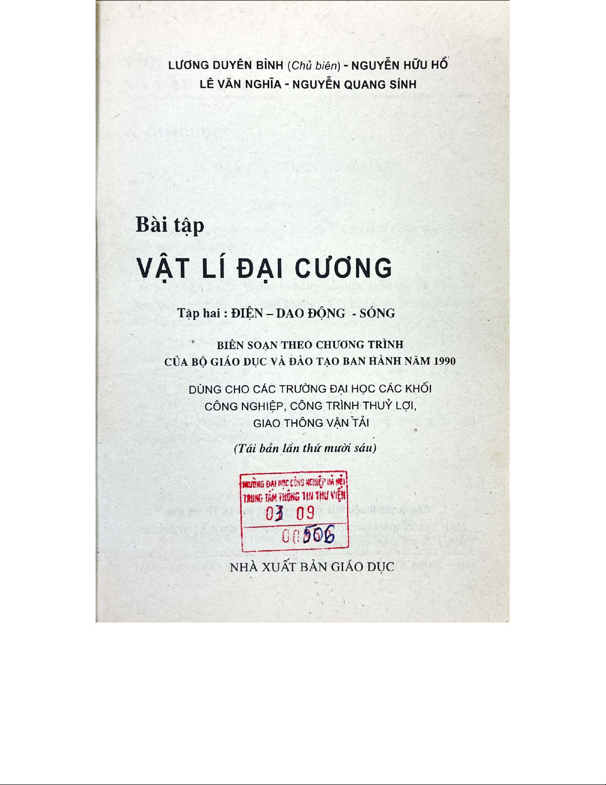 Sách bài tập Tập 2: Điện, Dao Động, Sóng môn Vật lý đại cương 2 | Học viện Công Nghệ Bưu Chính Viễn Thông