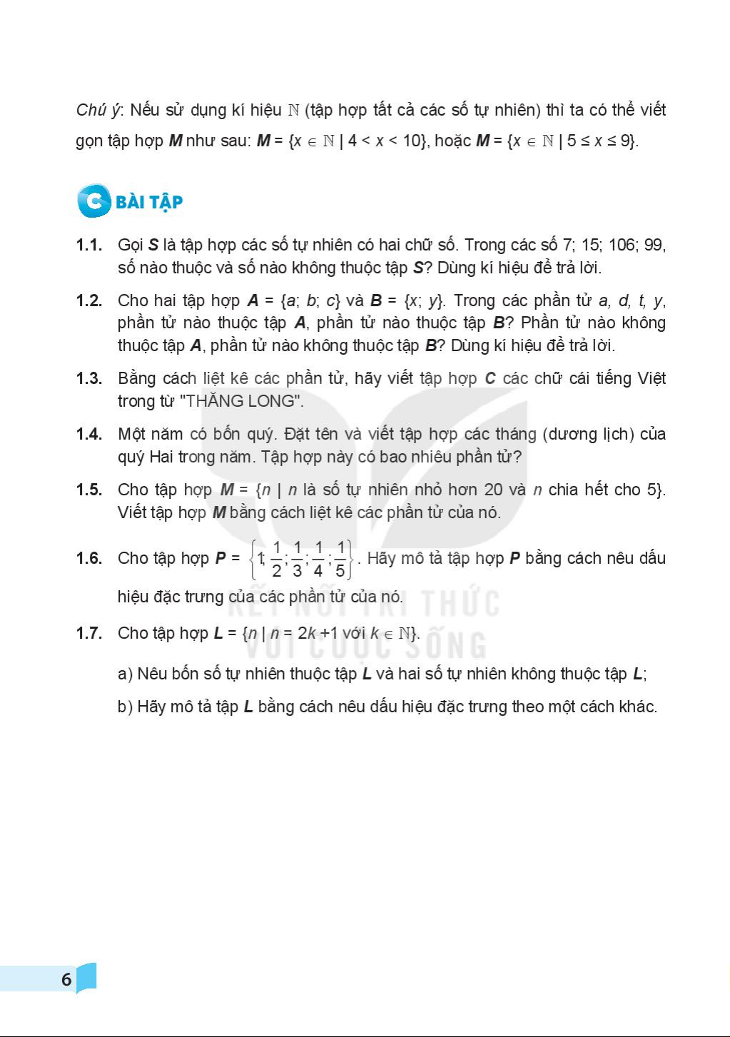 Sách bài tập Toán 6 (tập 1) (Kết Nối Tri Thức Với Cuộc Sống)