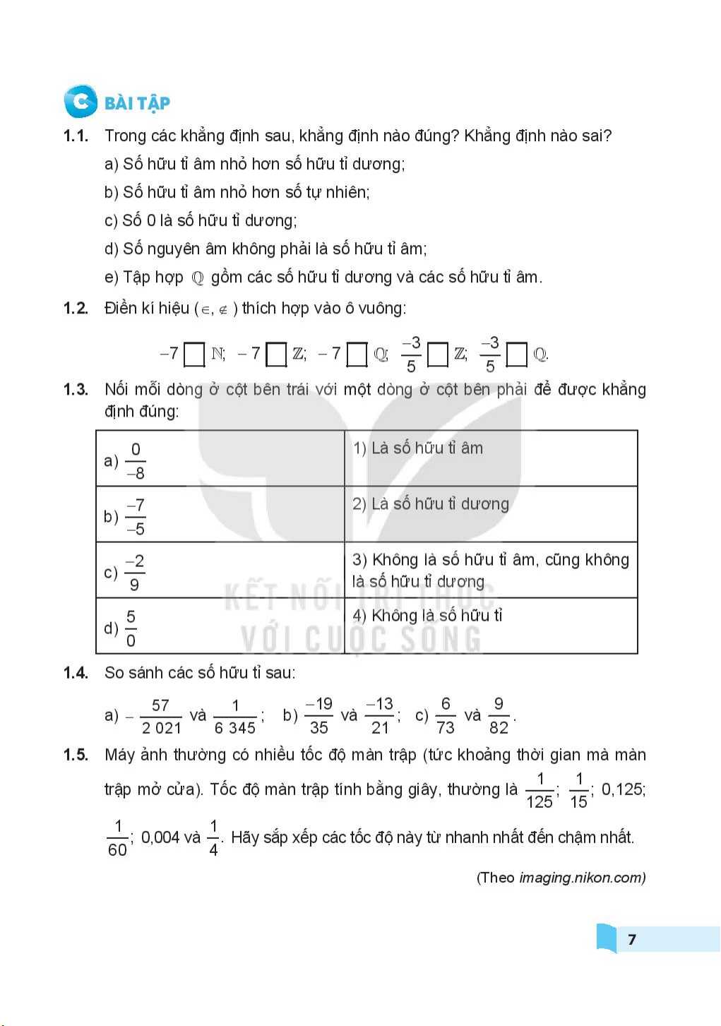 Sách bài tập Toán 7 (tập 1) (Kết Nối Tri Thức Với Cuộc Sống)