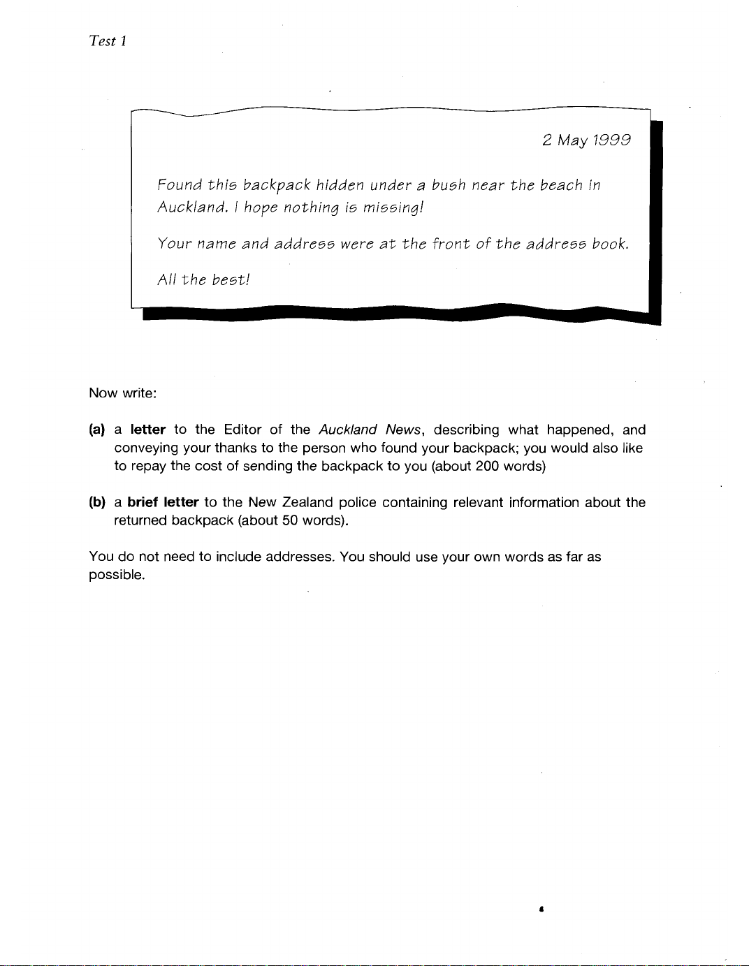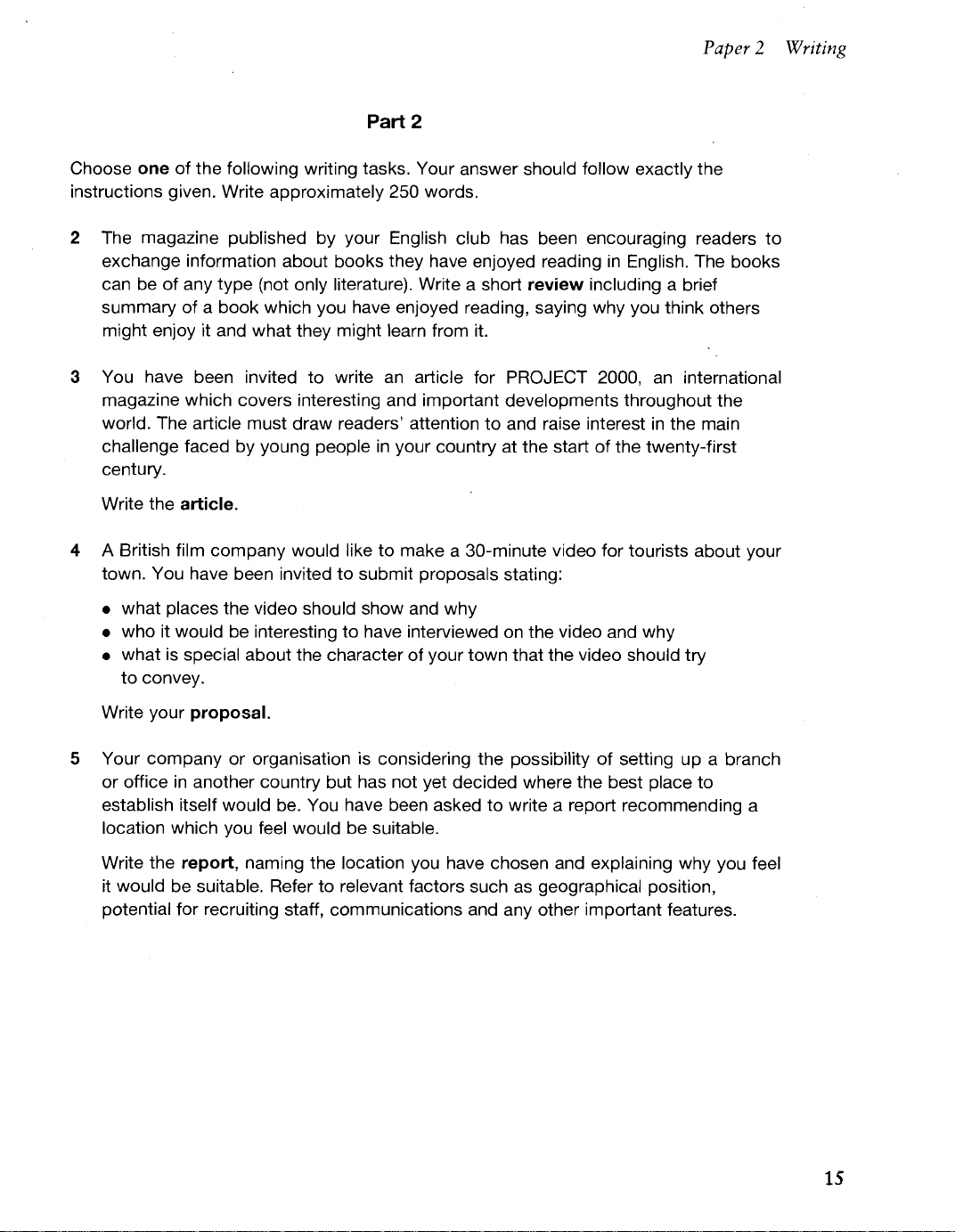 the following writing tasks. Your answer should follow exactly the