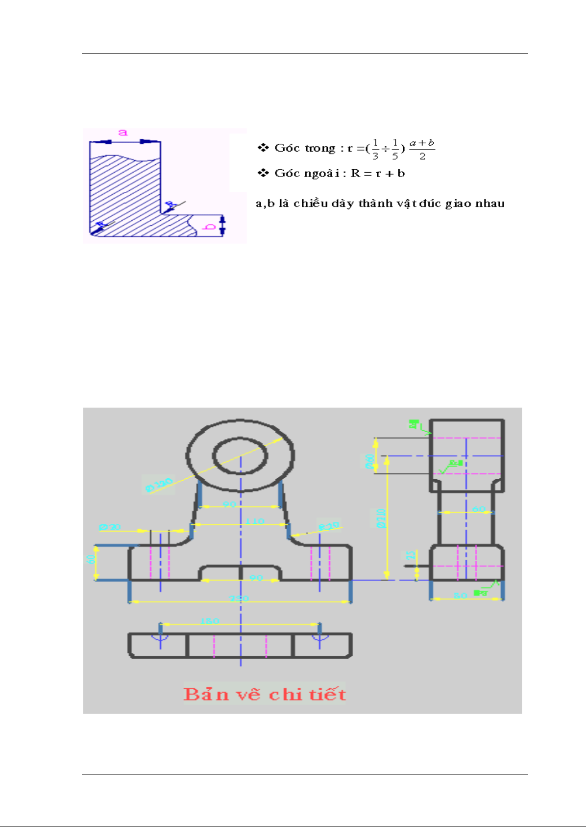 vật đúc để dễ đúc hơn nhưng không ảnh hưởng đến khả năng chịu lực, điều kiện làm việc của chi tiết.