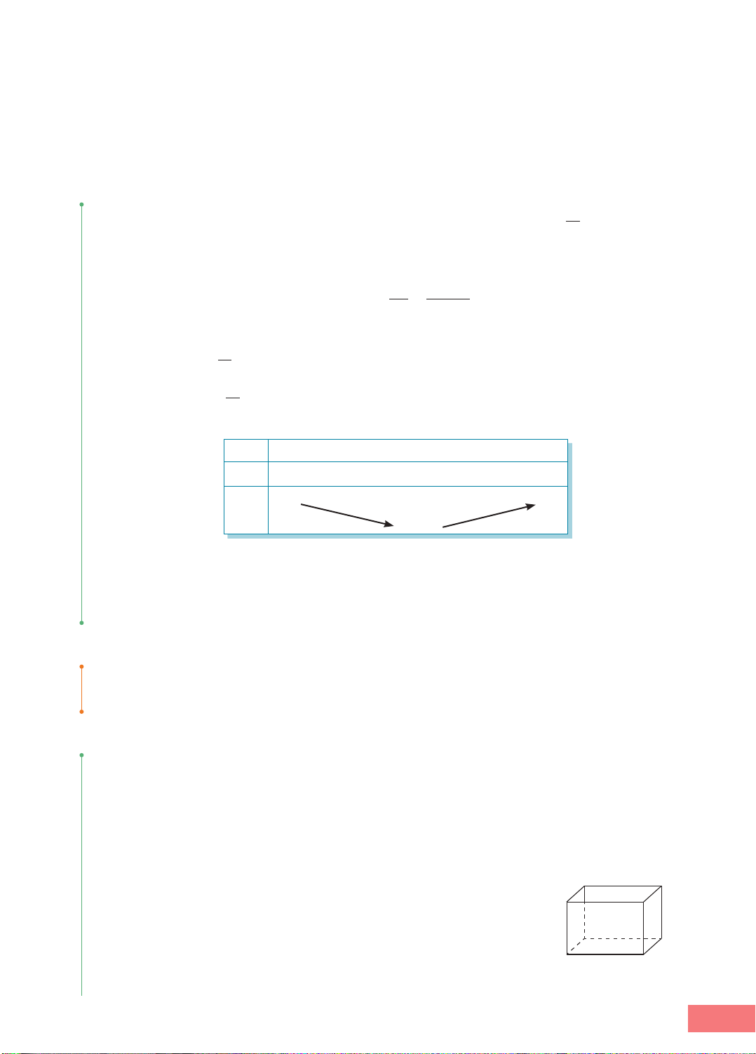3 + 9 > 0 khi x ! (0; 4] nên dấu của Sl(x) trên (0; 4] phụ thuộc dấu của biểu thức x − 3. Bảng biến thiên: x 0 3 4