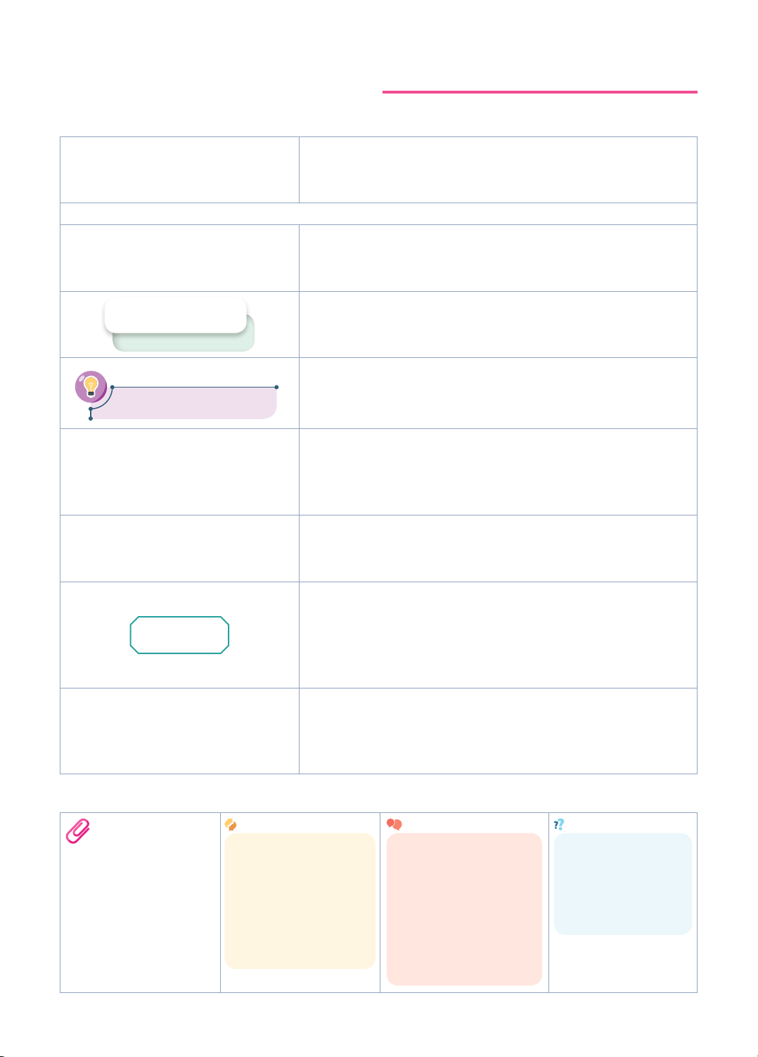 Bên cạnh đó, trong các bài còn có thêm một số đề mục bổ trợ sau đây: Ghi chú / Lưu ý NHẮC LẠI THẢO LUẬN EM CÓ BIẾT