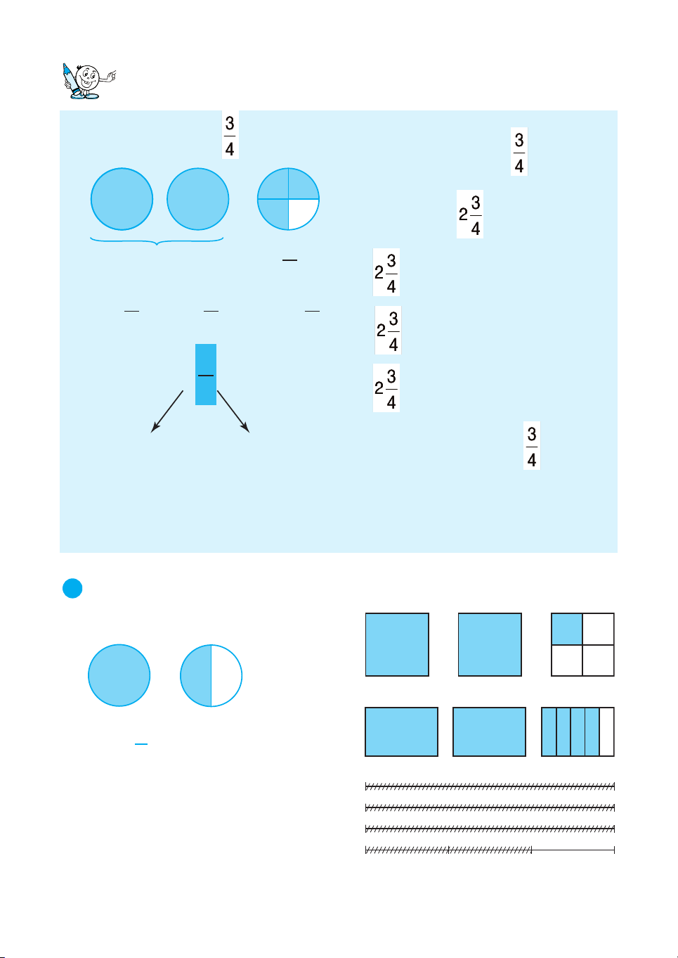 1 Dùa vµo h×nh vÏ ®Ó viÕt råi ®äc hçn sè thÝch hîp (theo mÉu) : MÉu : a) b) 1 ViÕt : 1 2