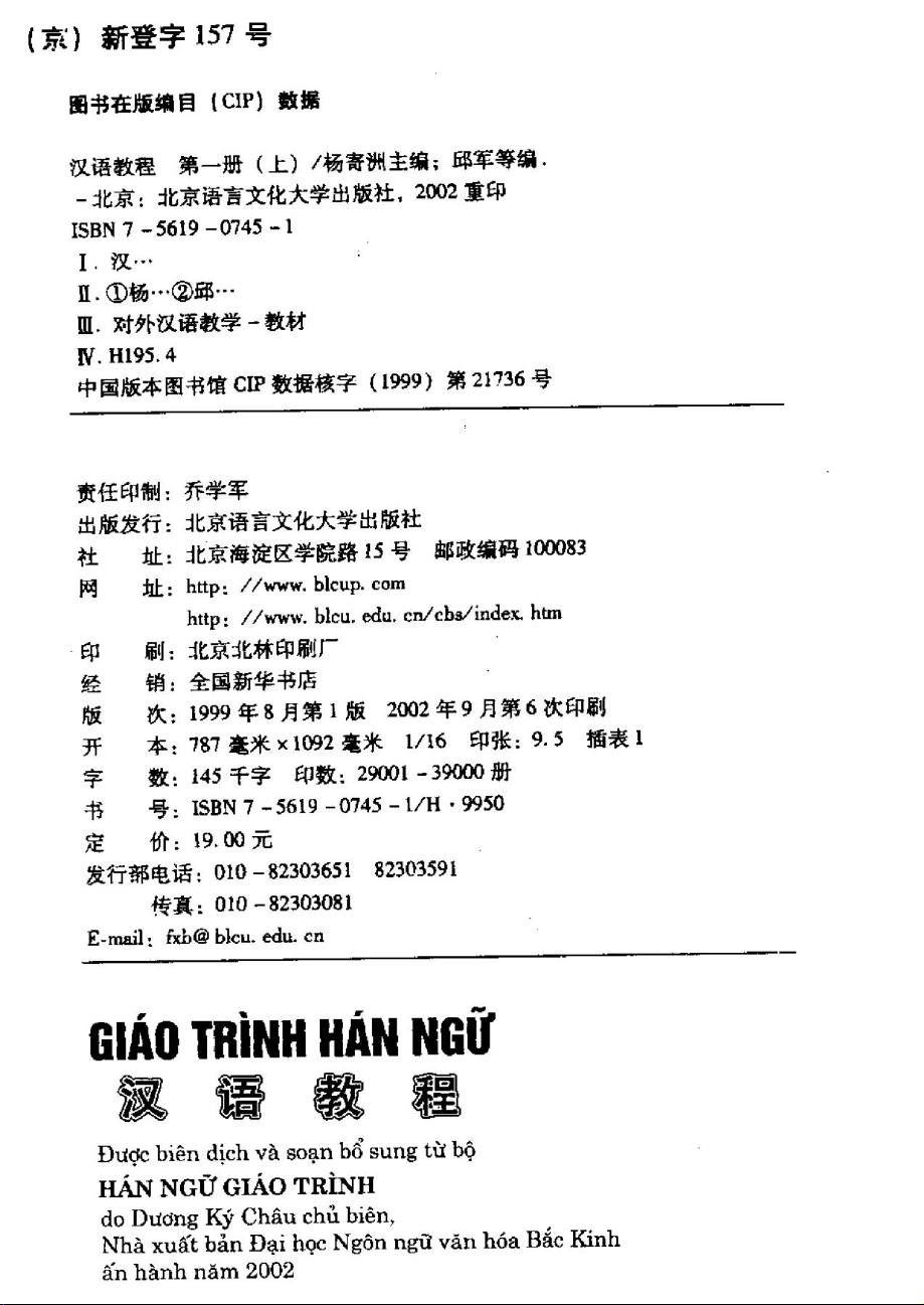 Sách giáo trình Hán ngữ Tập 1 Quyển Thượng môn Hán ngữ | Trường Đại học Hà Nội