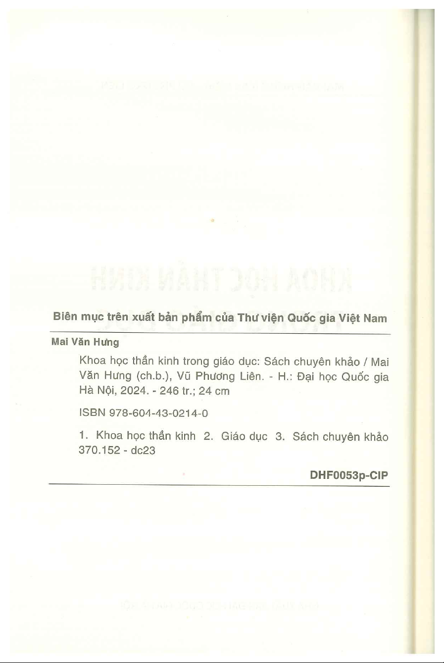 Sách giáo trình Khoa học thần kinh trong giáo dục môn Tâm lý học thần kinh | Trường Đại học Khoa học Xã hội và Nhân văn, Đại học Quốc gia Thành phố Hồ Chí Minh
