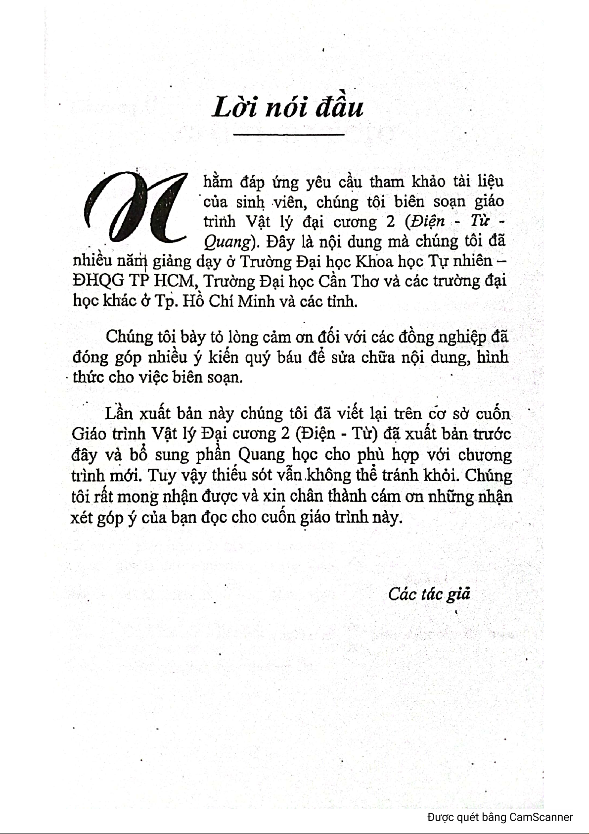Sách Giáo trình Vật Lý đại cương 2 | Trường Đại học Khoa học tự nhiên, Đại học Quốc gia Thành phố Hồ Chí Minh