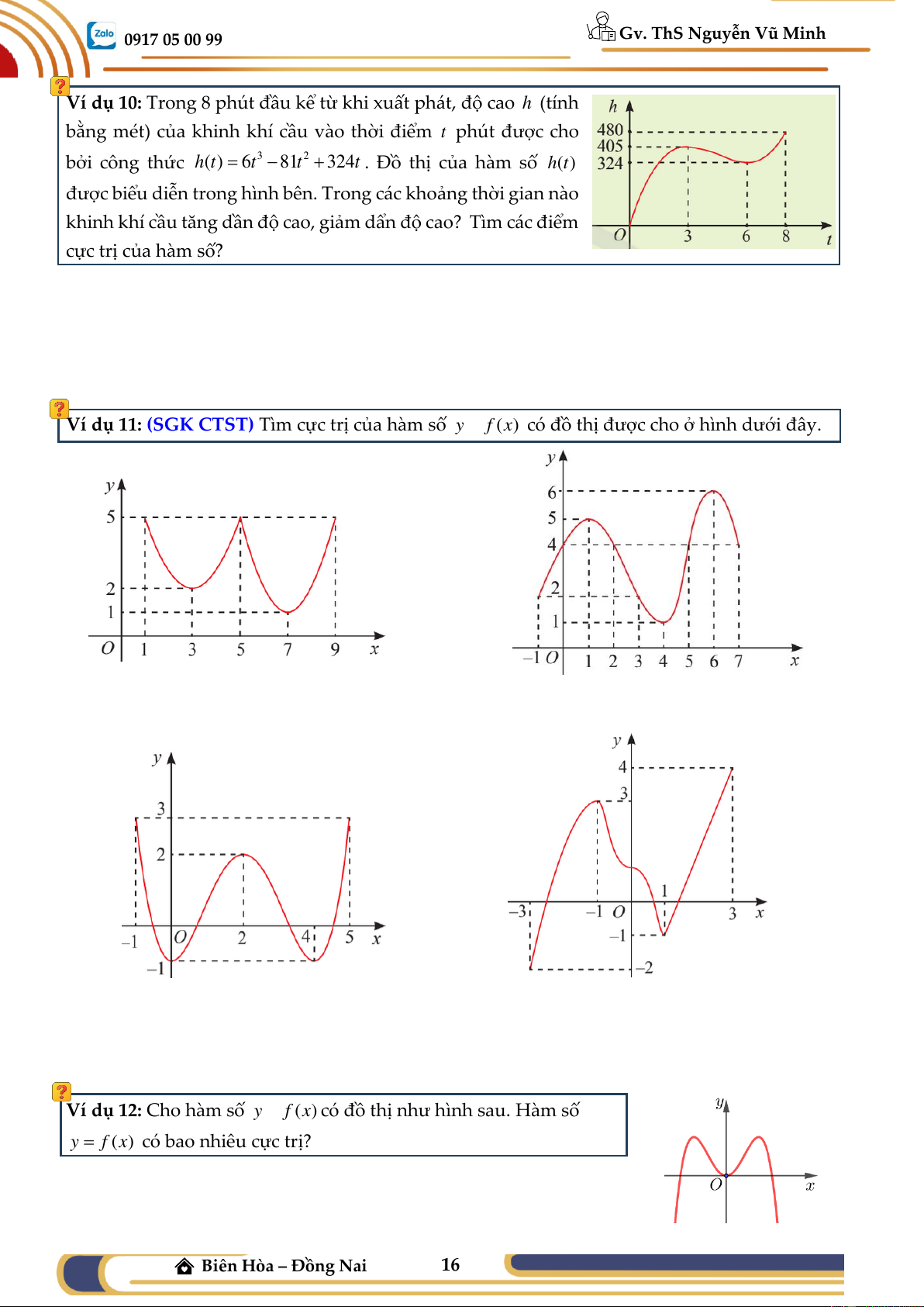 khinh khí cầu tăng dần độ cao, giảm dẩn độ cao? Tìm các điểm cực trị của hàm số?