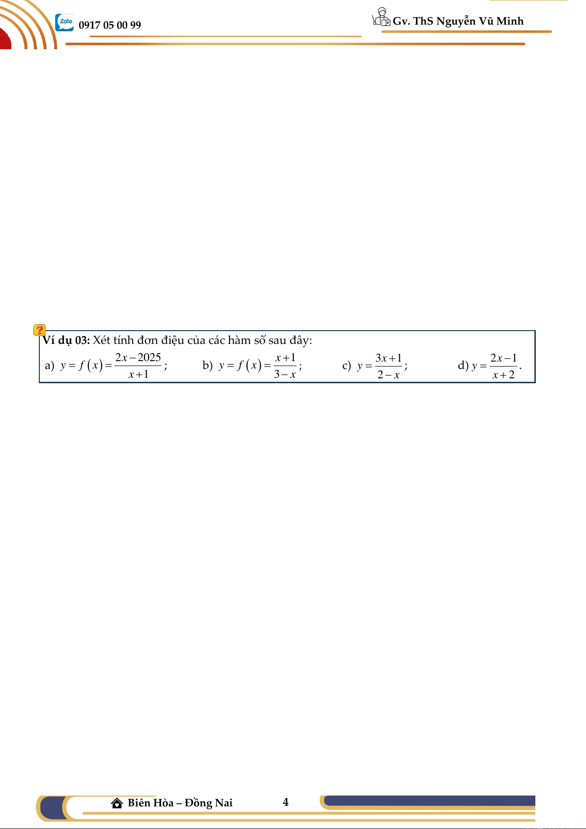 0917 05 00 99 (Toán – Vật Lí THPT) TÍNH ĐƠN ĐIỆU
