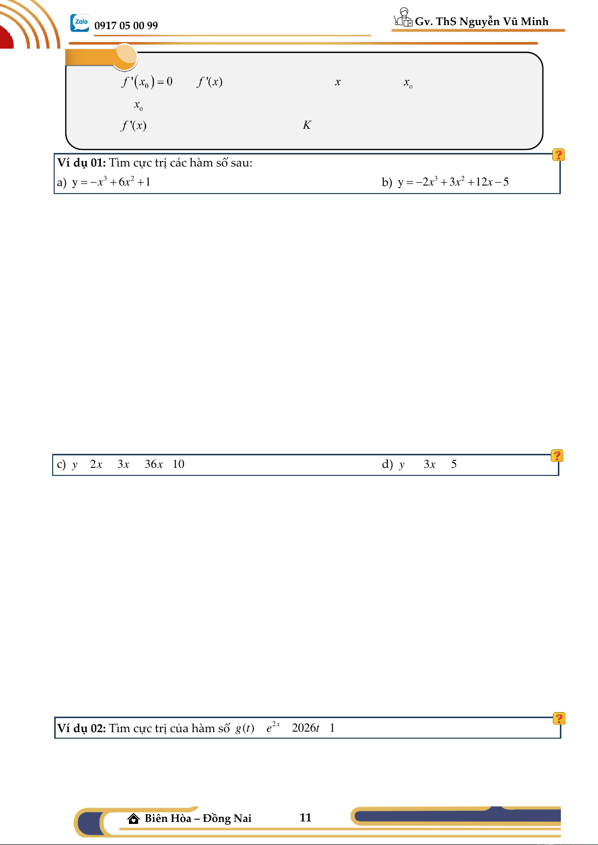 Ví dụ 02: Tìm cực trị của hàm số 2 ( ) x g t = e + 2026 t −1