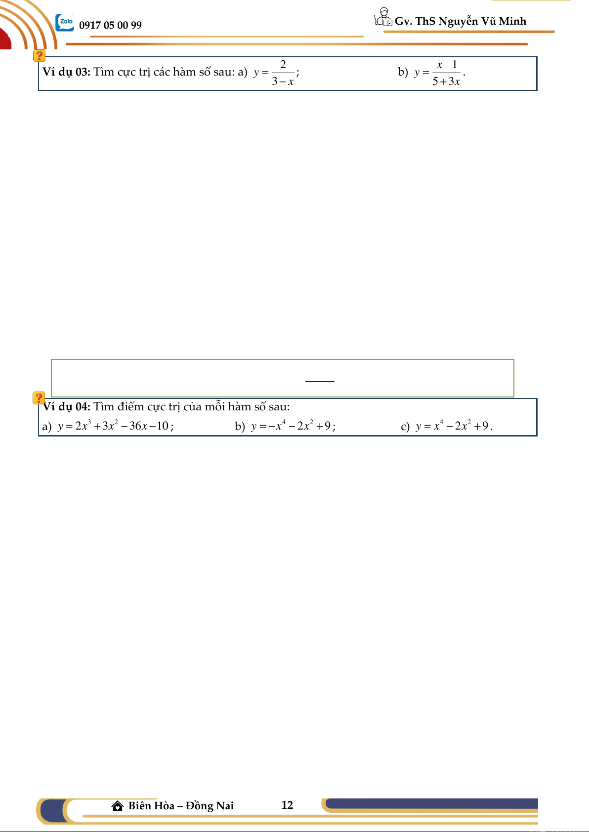 Ví dụ 03: Tìm cực trị các hàm số sau: a) y = ; b) y = . 3 − x 5 + 3x +