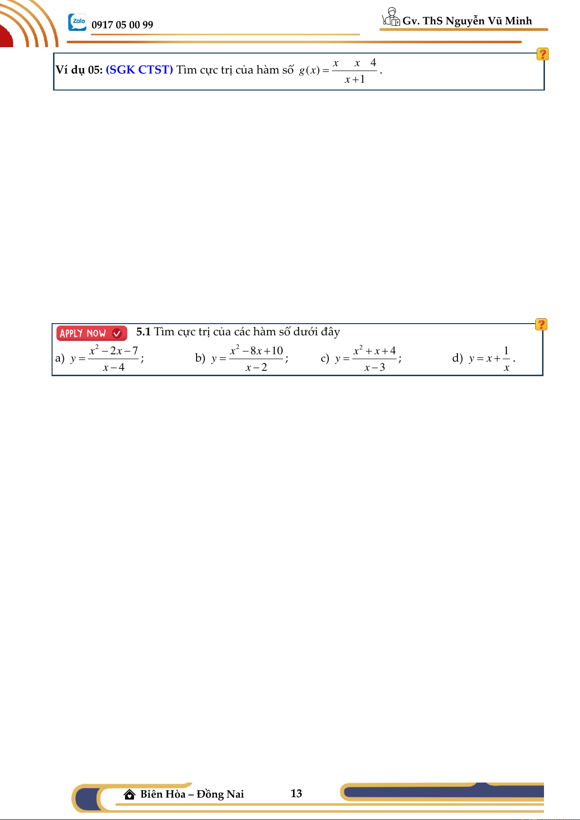 Ví dụ 05: (SGK CTST) Tìm cực trị của hàm số g (x) = . x +1