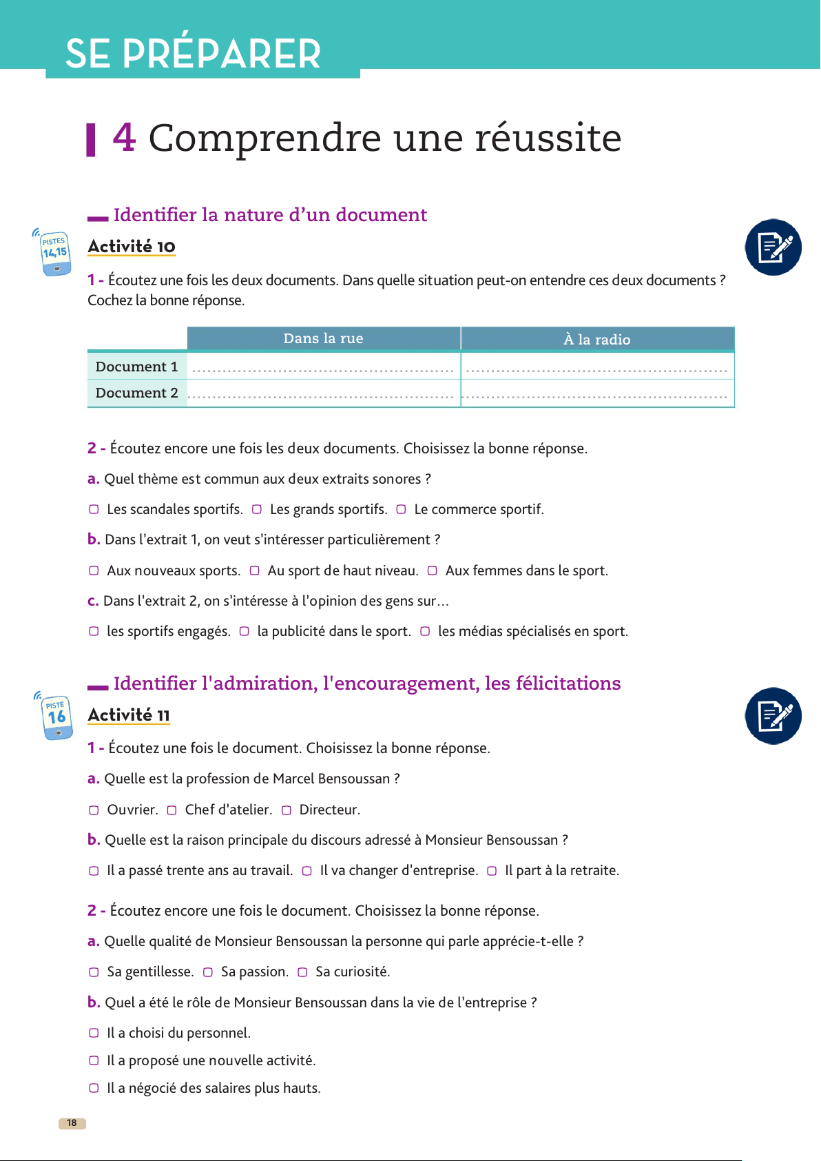 u Se préparer : des activités pour acquérir les savoir-faire indispensables pour réussir.