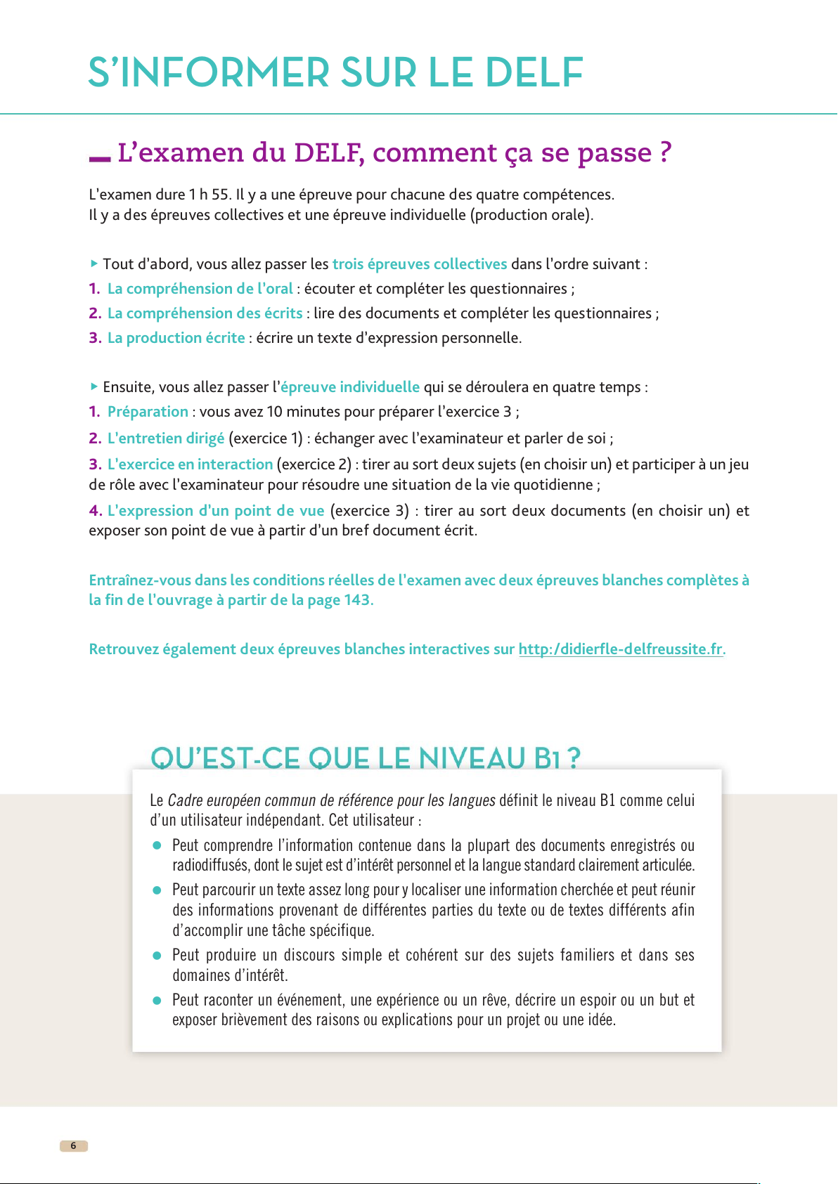 DELF A1.1 (DELF Prim), DELF A1, DELF A2, DELF B1 et DELF B2.