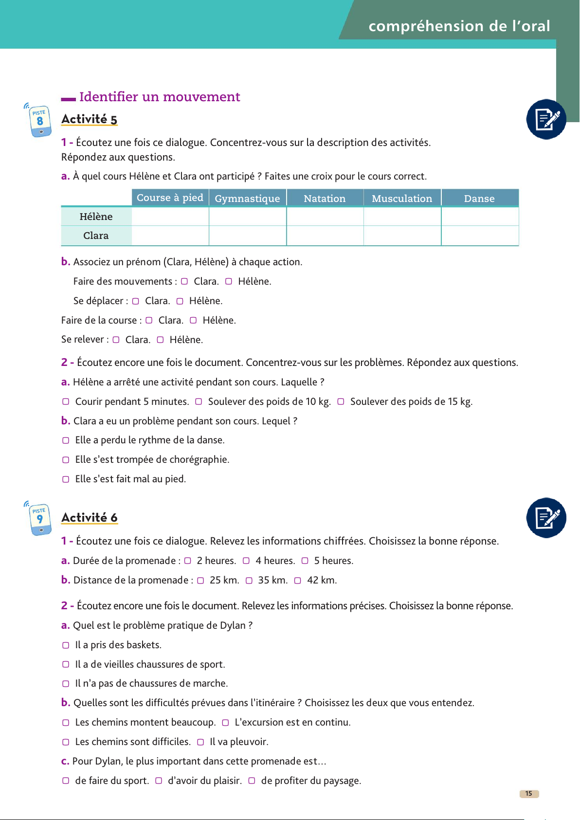 1. La compréhension de l’oral : écouter et compléter les questionnaires ;