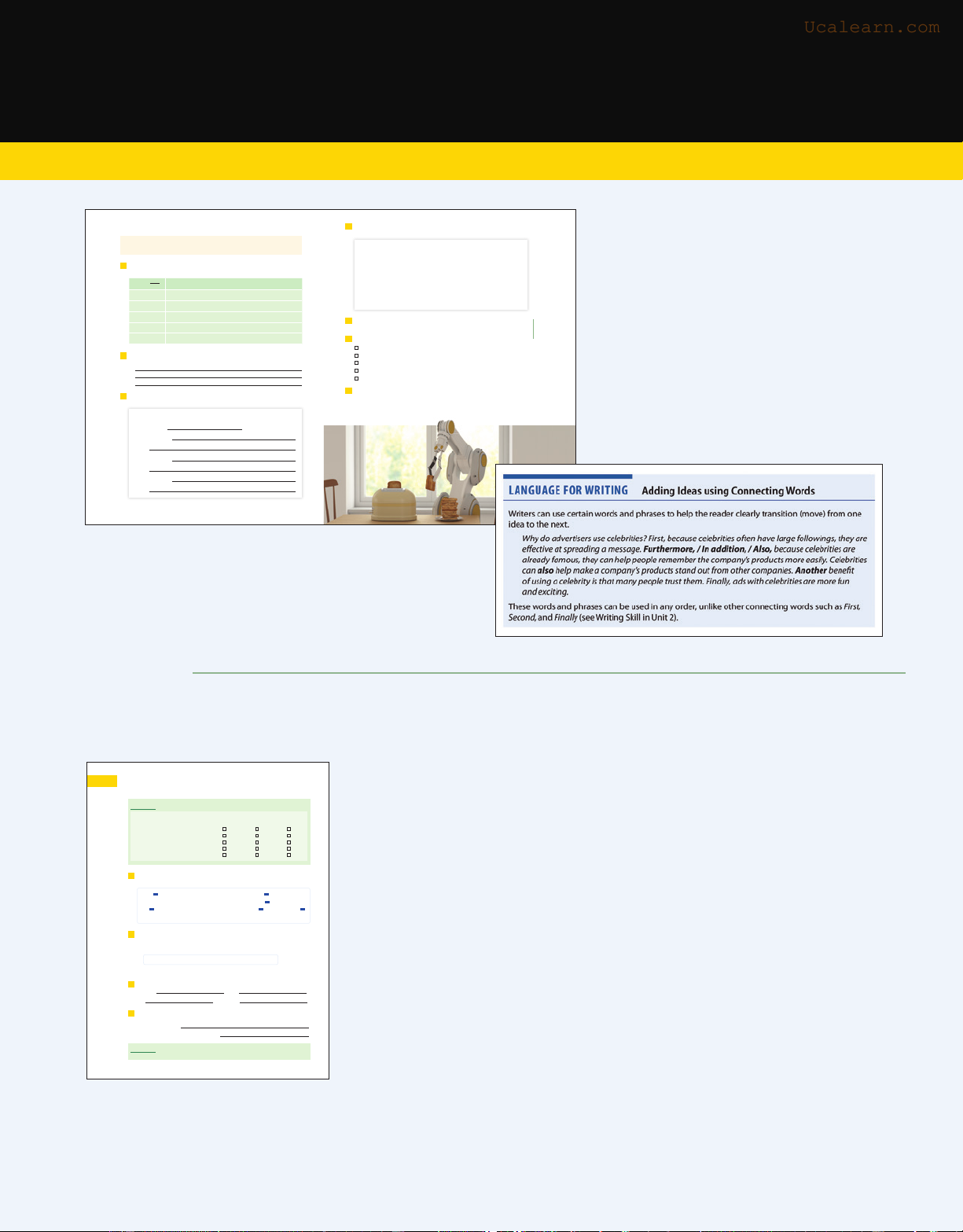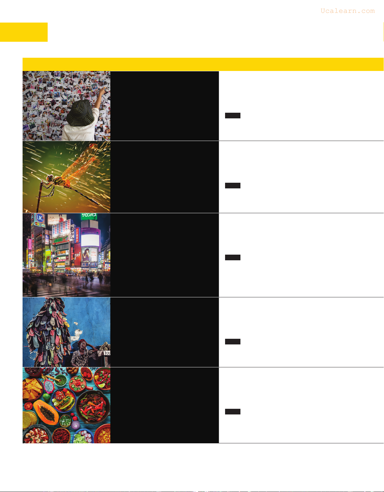 why people enjoy sharing pictures of food online v Ucalearn.com Scope and Sequence Unit Title and Theme Reading Critical Thinking Vocabulary Writing 6 Explore the Theme Reading Skill Critical Thinking Skill Vocabulary Extension Language for Writing City: 2050 Identifying Examples Identify Pros and Cons -able, Changing Verbs